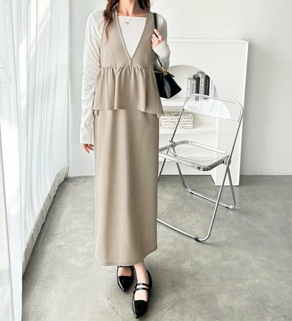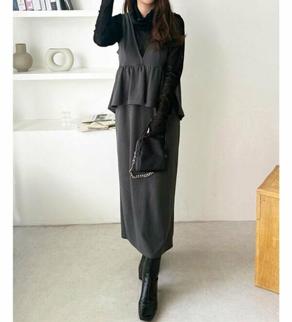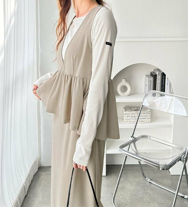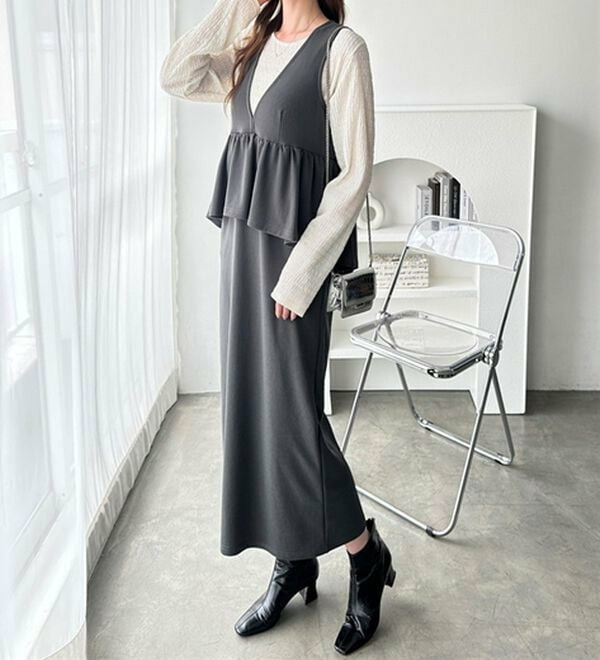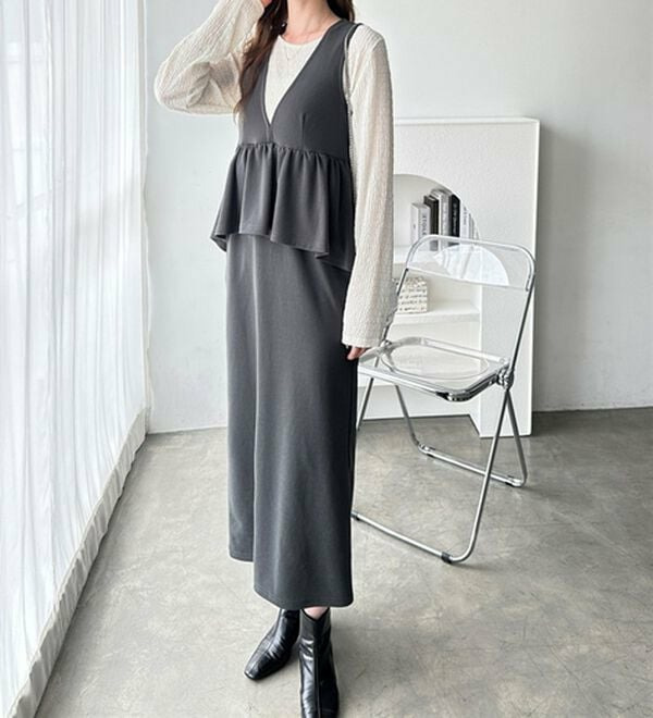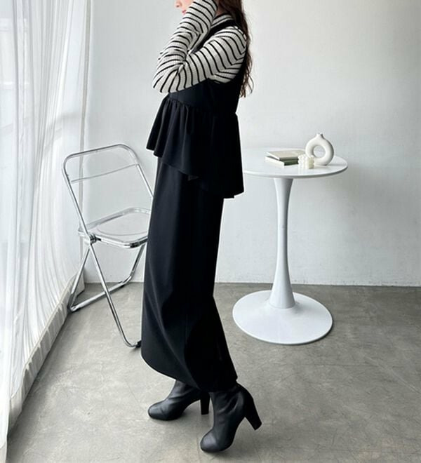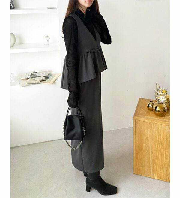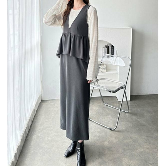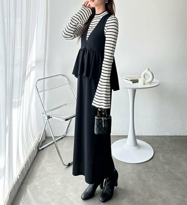 華やかなペプラムデザインがトレンド感たっぷりのジャンパースカート。