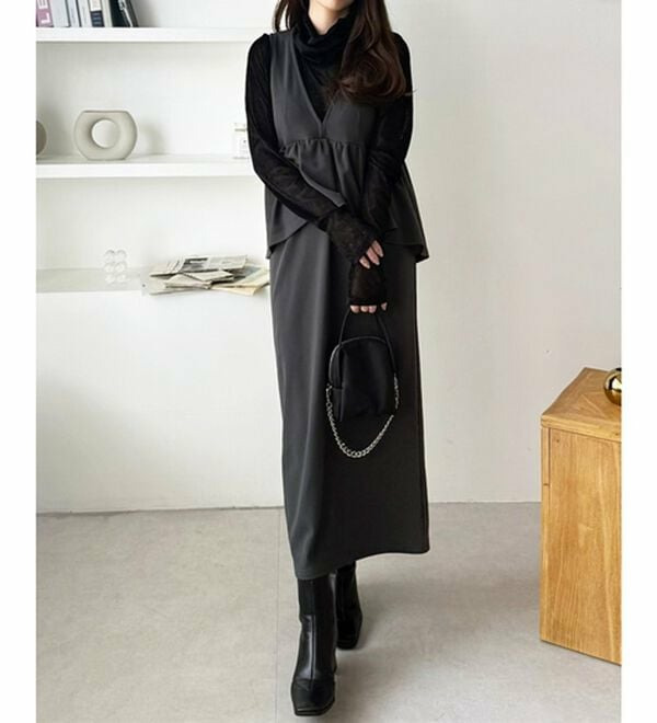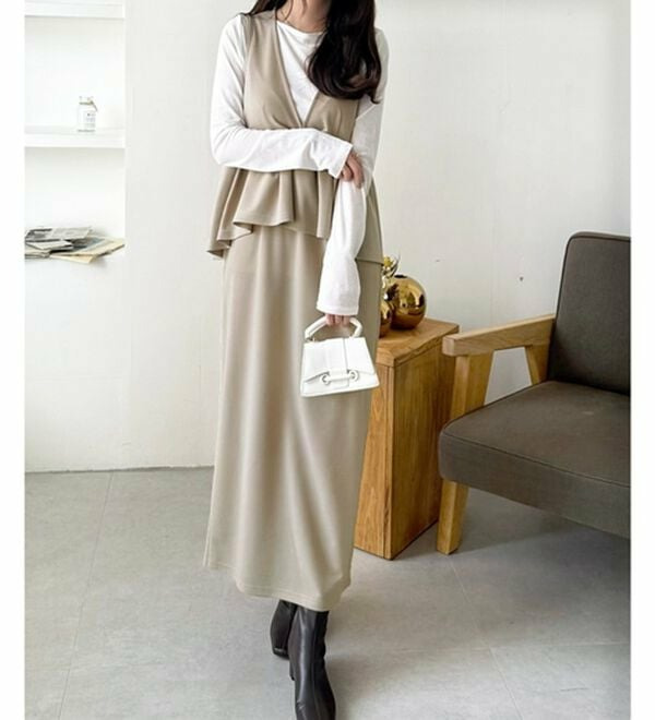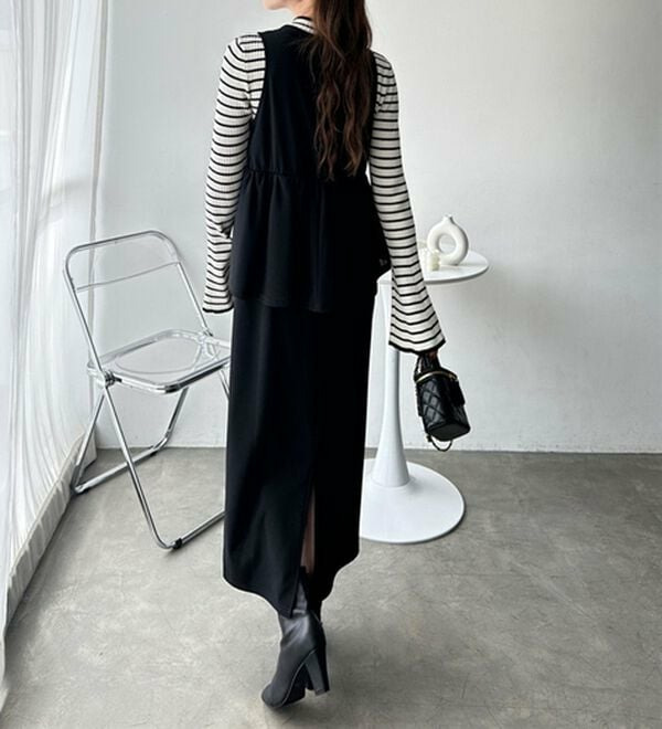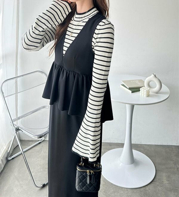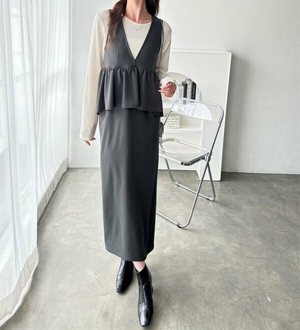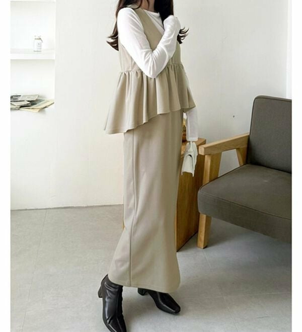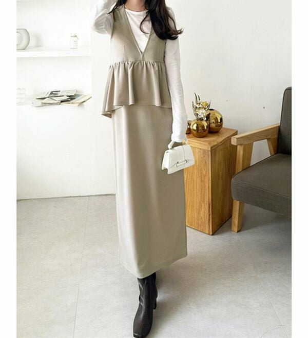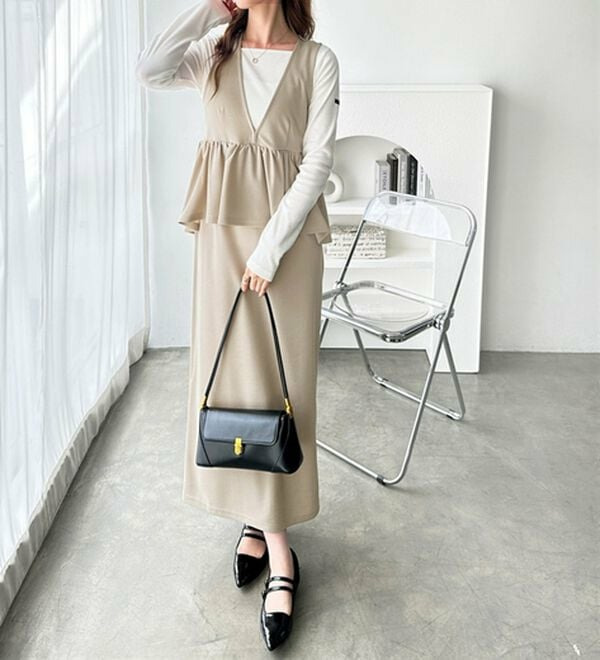 華やかなペプラムデザインがトレンド感たっぷりのジャンパースカート。