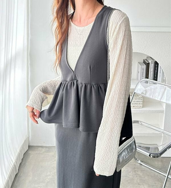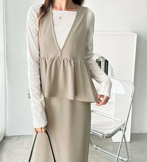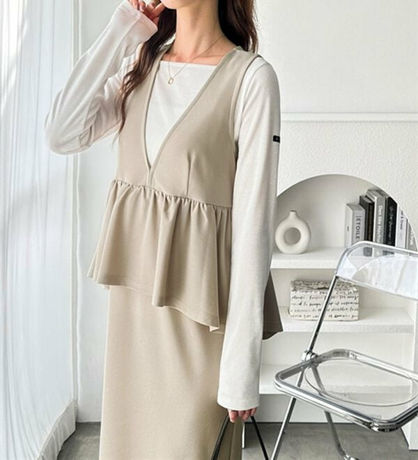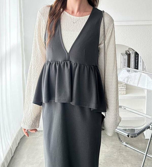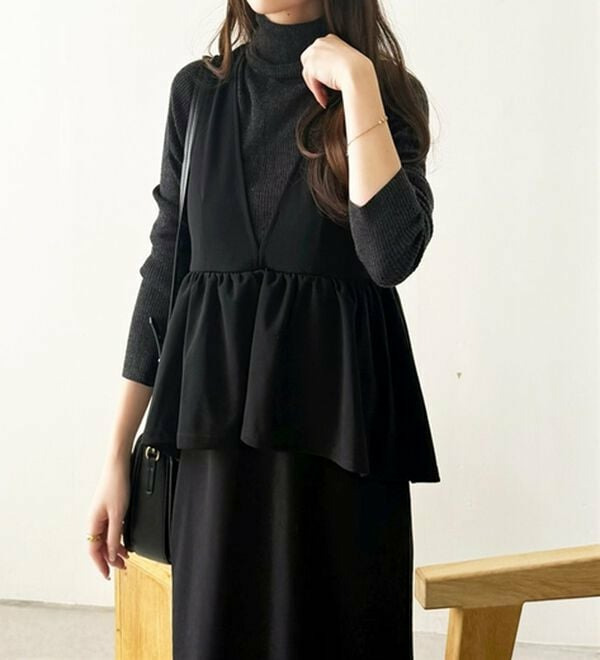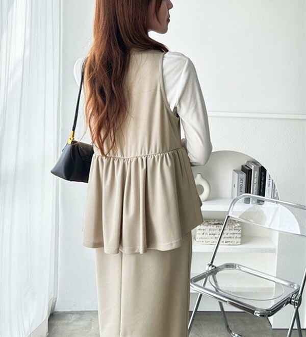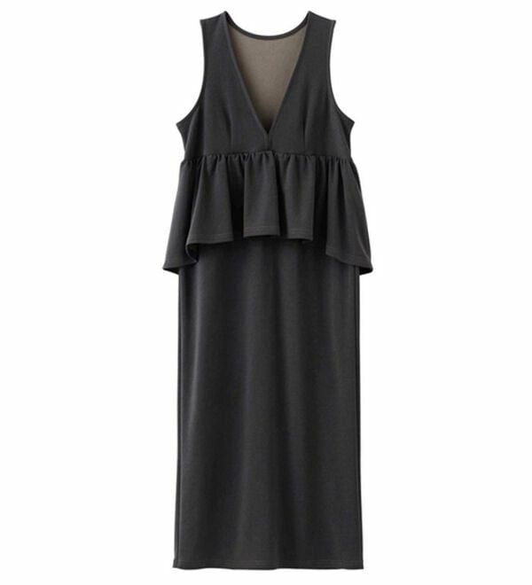 ギャザーの入ったペプラムがウエスト周りをカバーしてくれます。