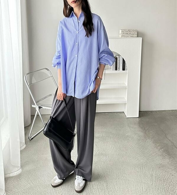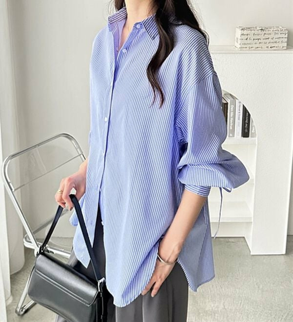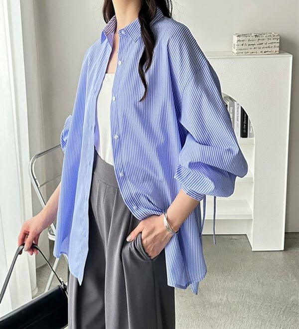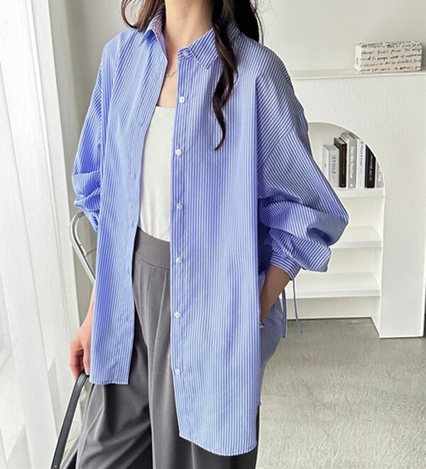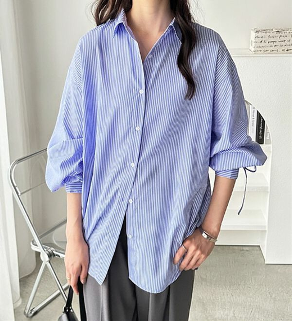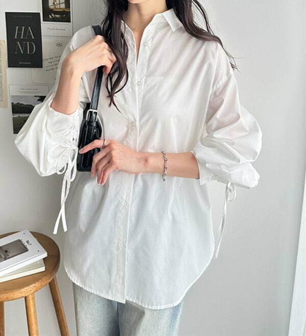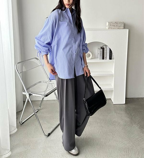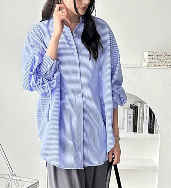 袖とバックのギャザーが目を惹くオーバーサイズシャツ