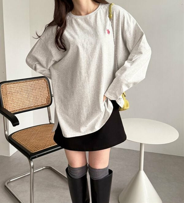重ね着しやすいルーズなシルエットと前後差のあるラウンドヘムが今っぽい。