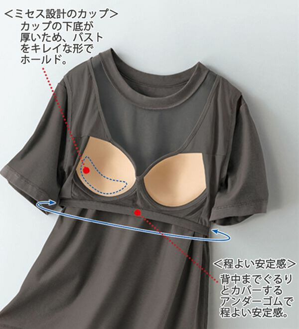 ミセスに嬉しいカップ付!おしゃれTシャツ