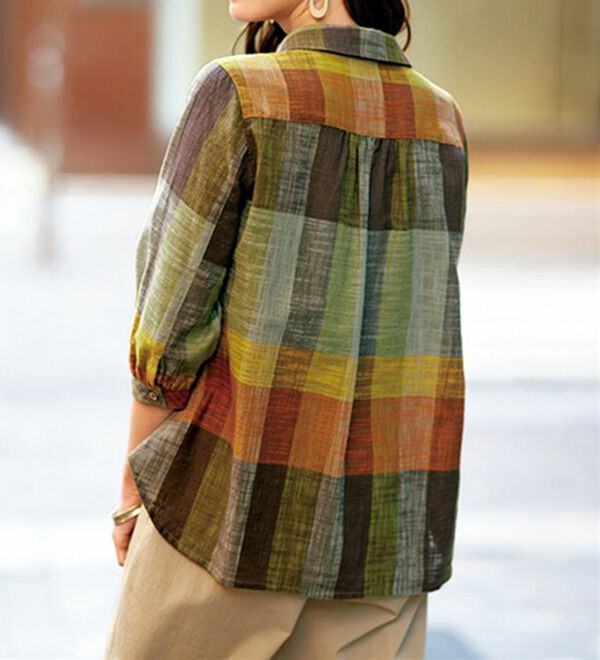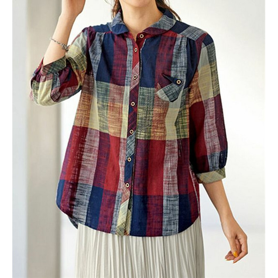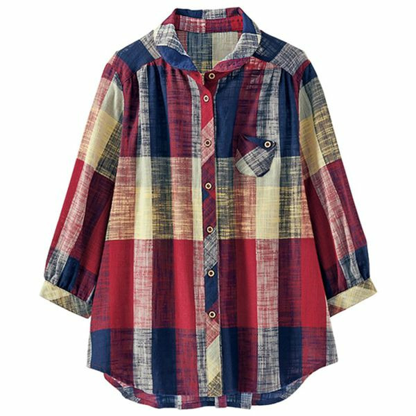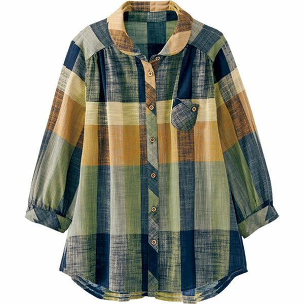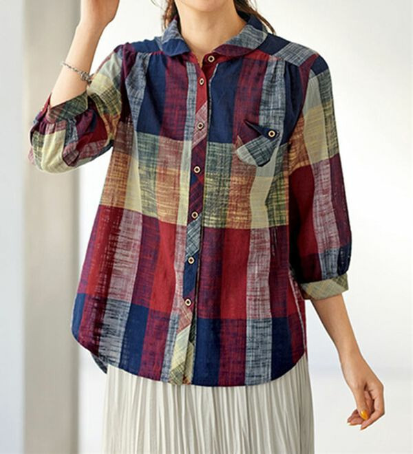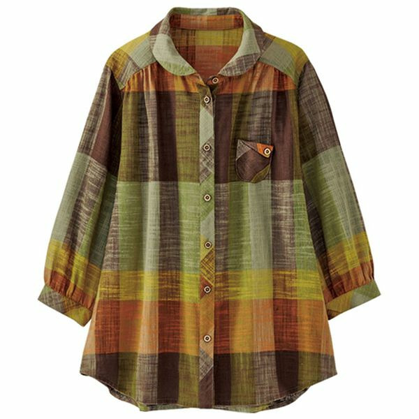 スラブ調先染めチェックポケットブラウス