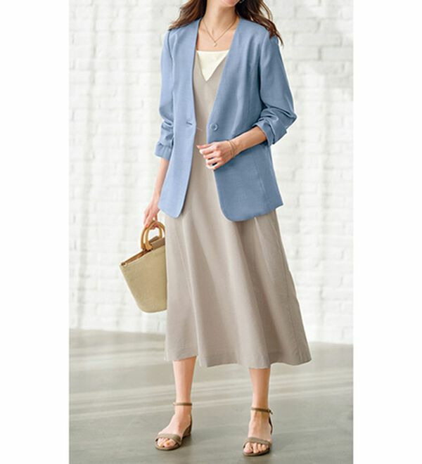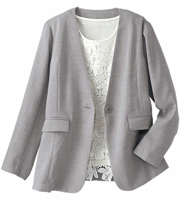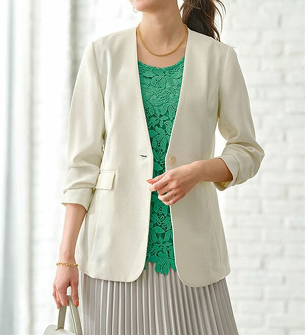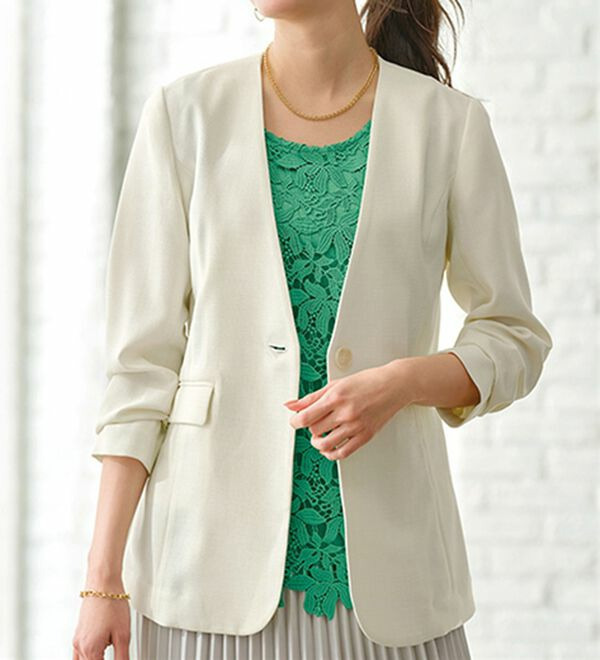 <楽スタフィット>ノーカラージャケット