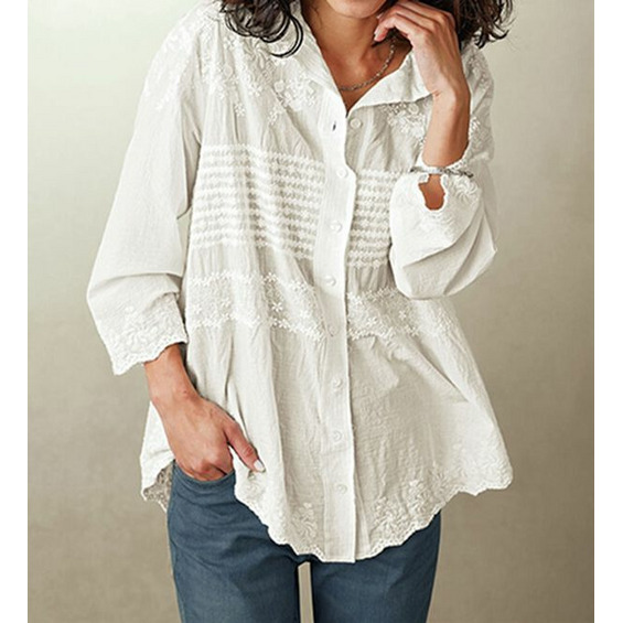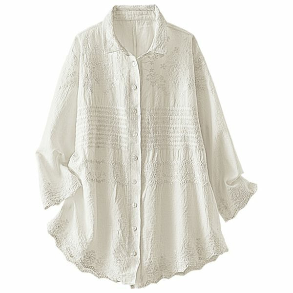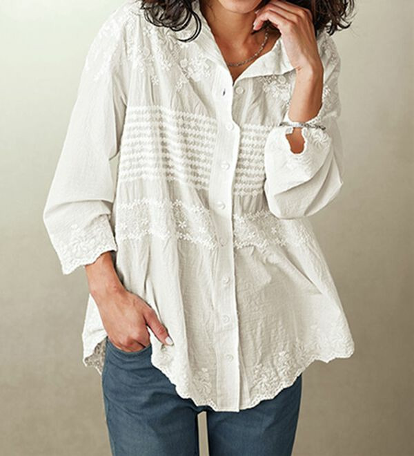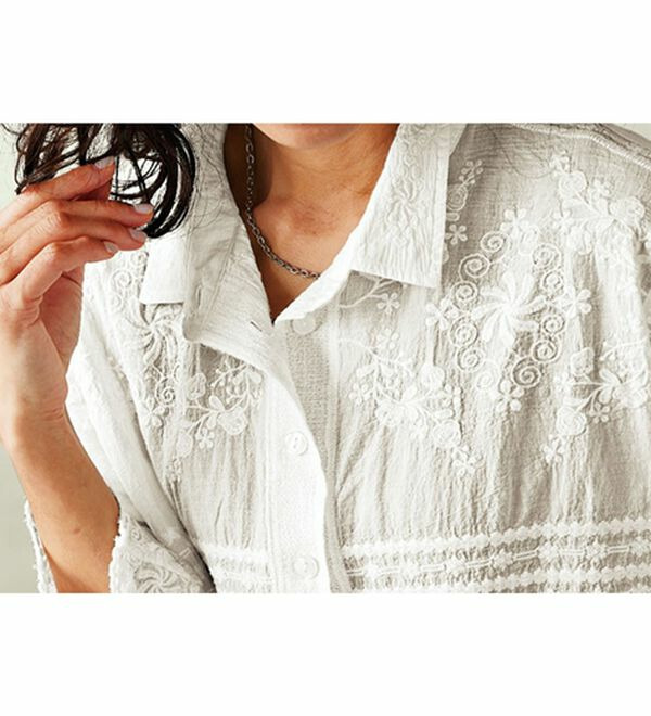 綿混ワッシャー素材パネル刺しゅうブラウス