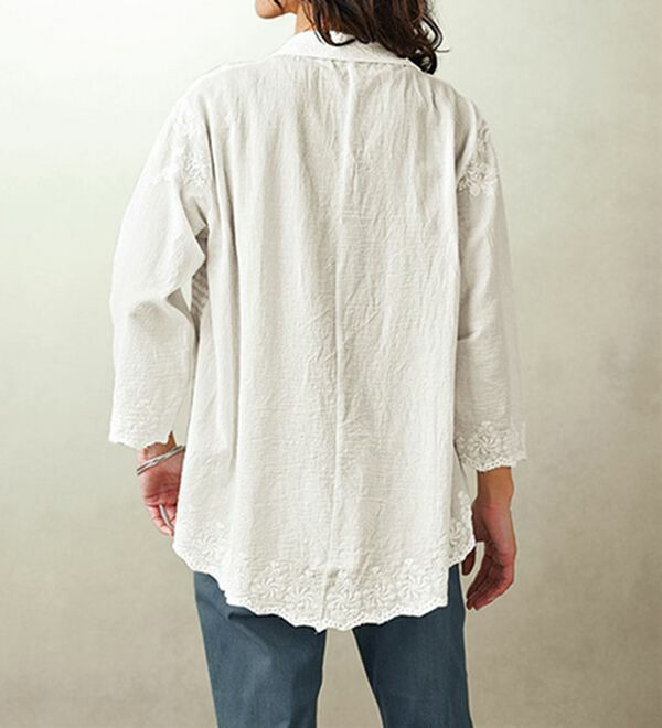 <ブラウス全体に繊細な刺しゅう>