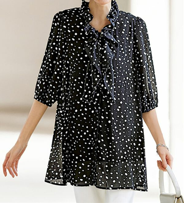 二の腕カバー楊柳ドット柄オーバーブラウス