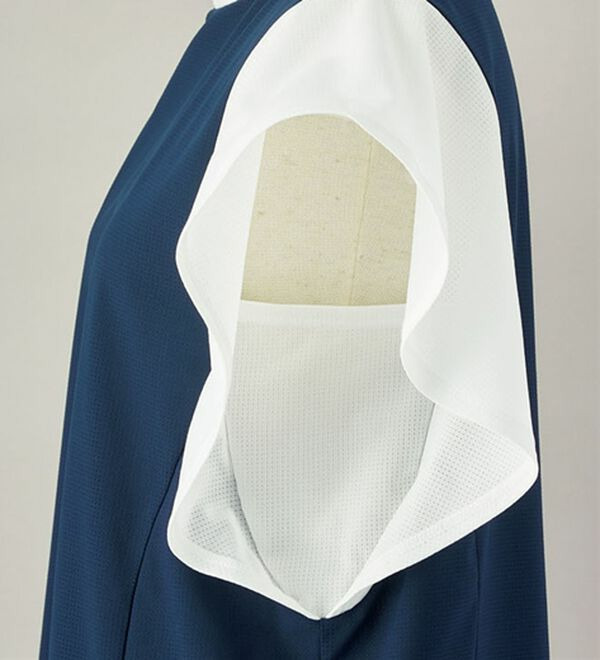 大きくスイングしてもインナーが見えにくい、マチ付きのフレアースリーブが華やか。