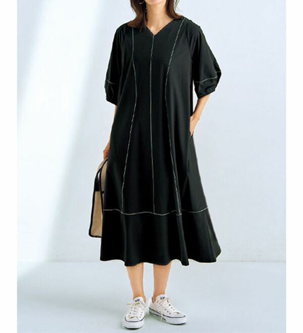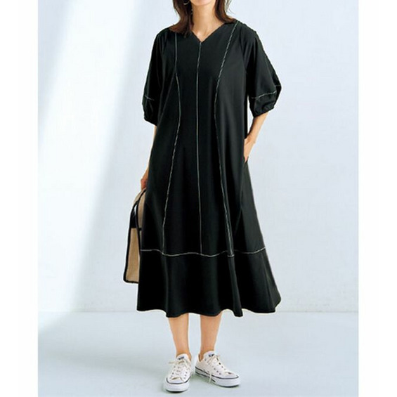 ロングワンピースでも着心地、お手入れ、どちらもラクちん。