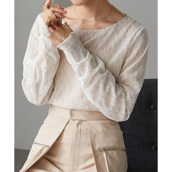 繊細なレースの透け感が女性らしさを引き立てるプルオーバー。