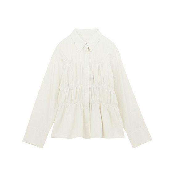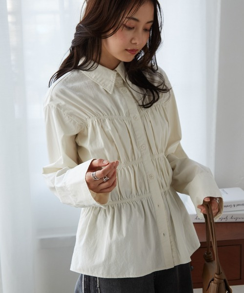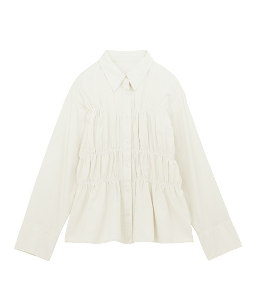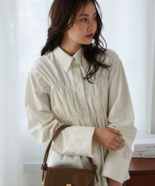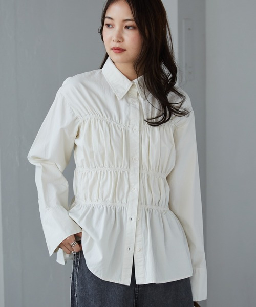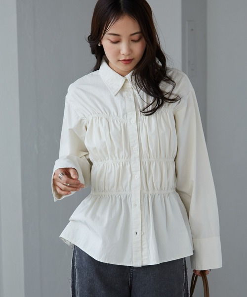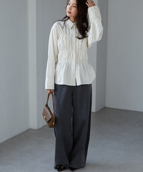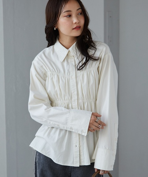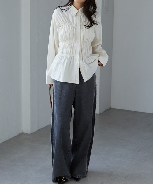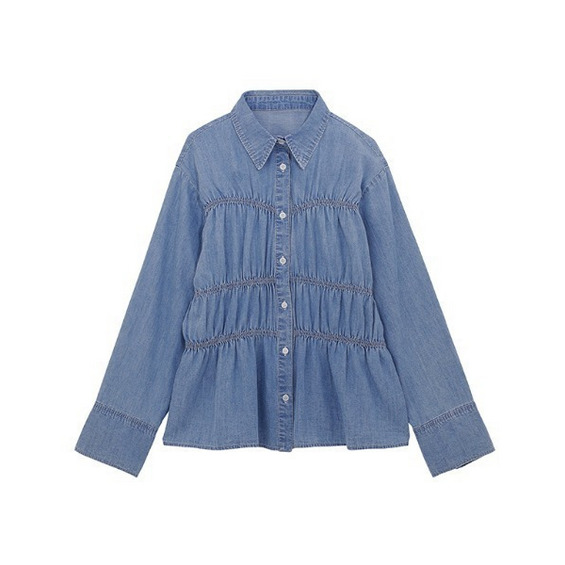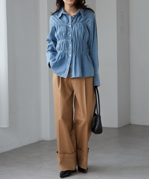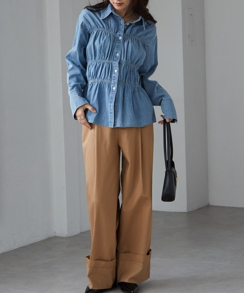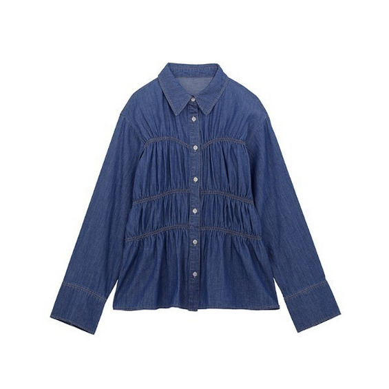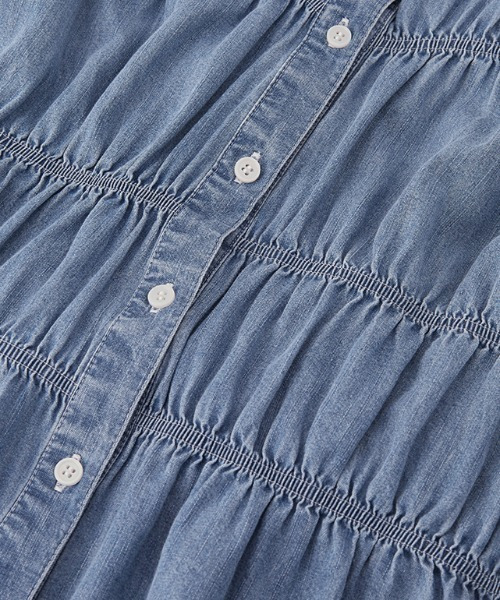 ビスチェ風のシャーリングを施したデニムデザインシャツ