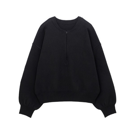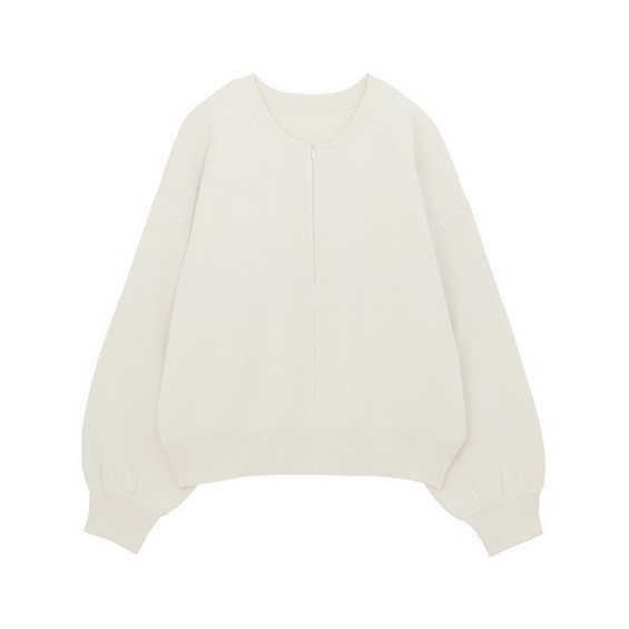 ジップの開け具合でクルーネックとキーネックの両方を楽しめるハーフジップニット。ジップを開ければ抜け感あるキーネック、閉じればベーシックなクルーネックに早変わり。程よくボリュームを持たせた袖とドロップショルダーがこなれた印象を演出。リブ仕様の袖口や裾が全体を引き締め、カジュアルながら上品見えする万能トップスです。