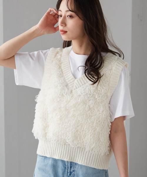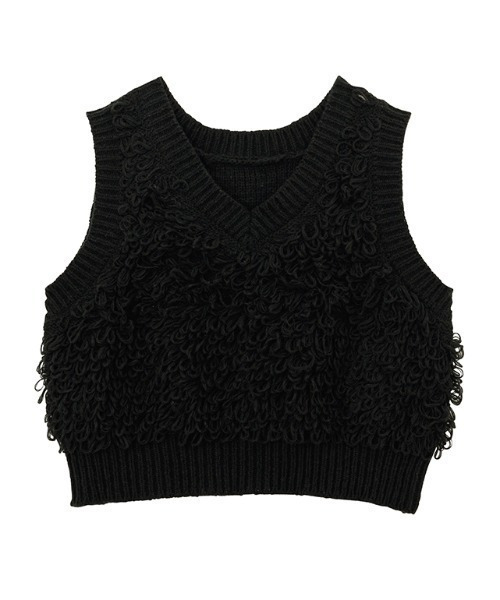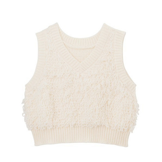 ・ループ編みフリンジを施したニットベスト