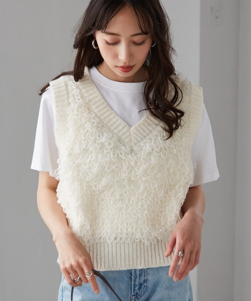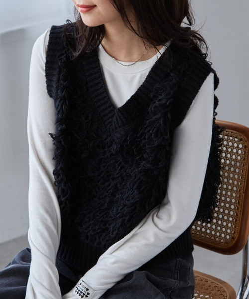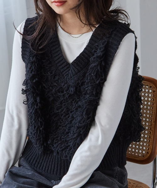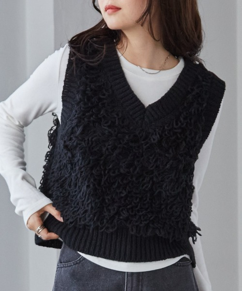 ループフリンジニットベスト
