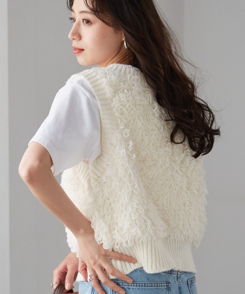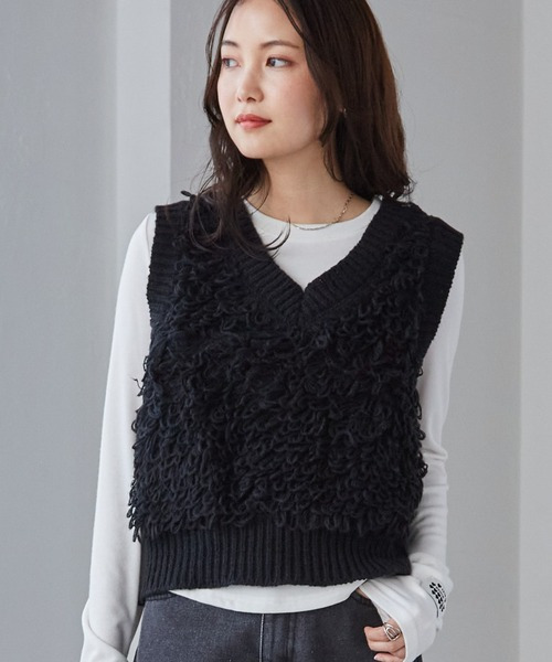 ・全体にループ編フリンジを施したデザイン性のあるベスト。