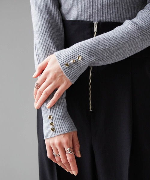 伸縮性のある柔らかなリブニットで、ストレスフリーな着心地。