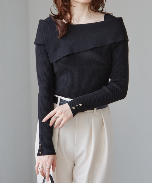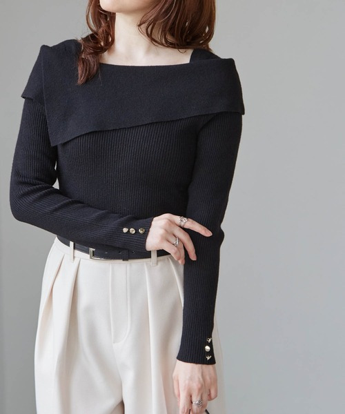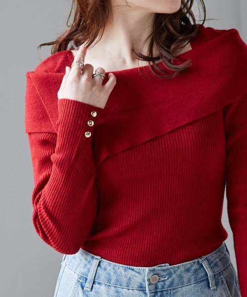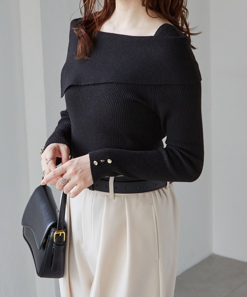 美しいシルエットが魅力のオフショルリブニットが登場!