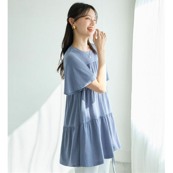 身頃のティアードデザインが目を惹き、カジュアルすぎず大人可愛く決まります。