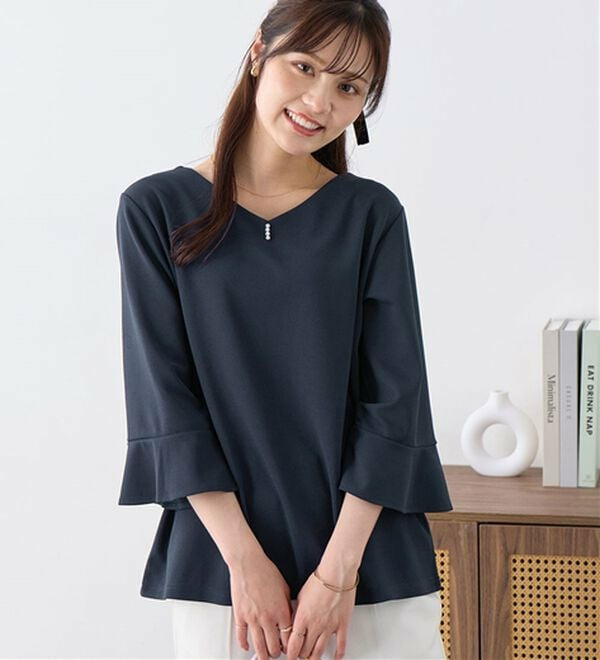 ・Vネック仕様で顔周りすっきり&女性らしい印象に