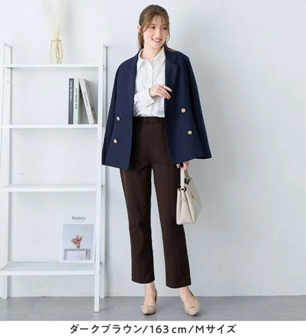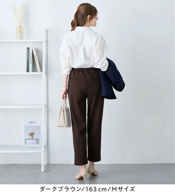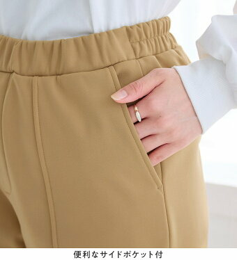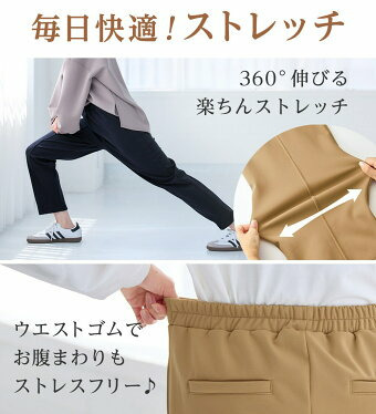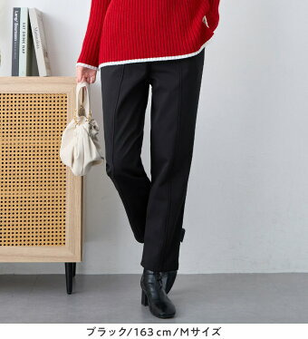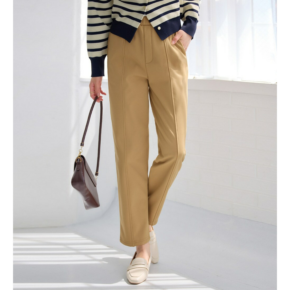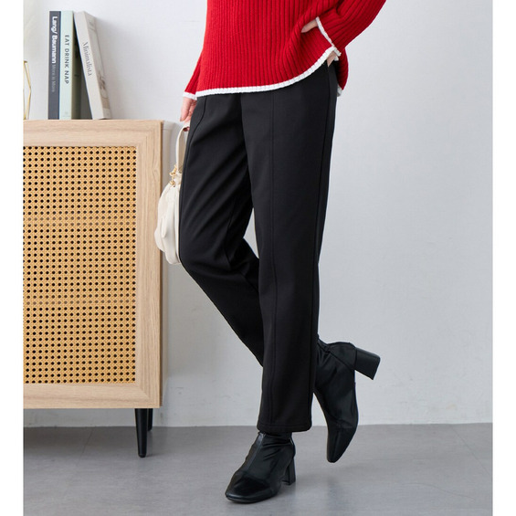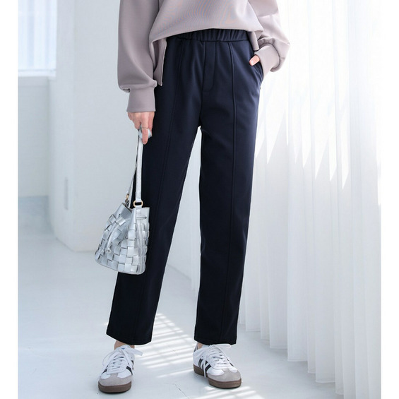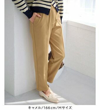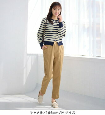 ・センターにピンタックが脚をすっきり長く見せる、美脚効果抜群のテーパードパンツ。