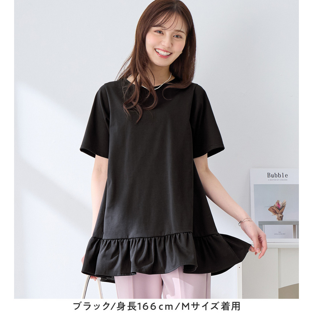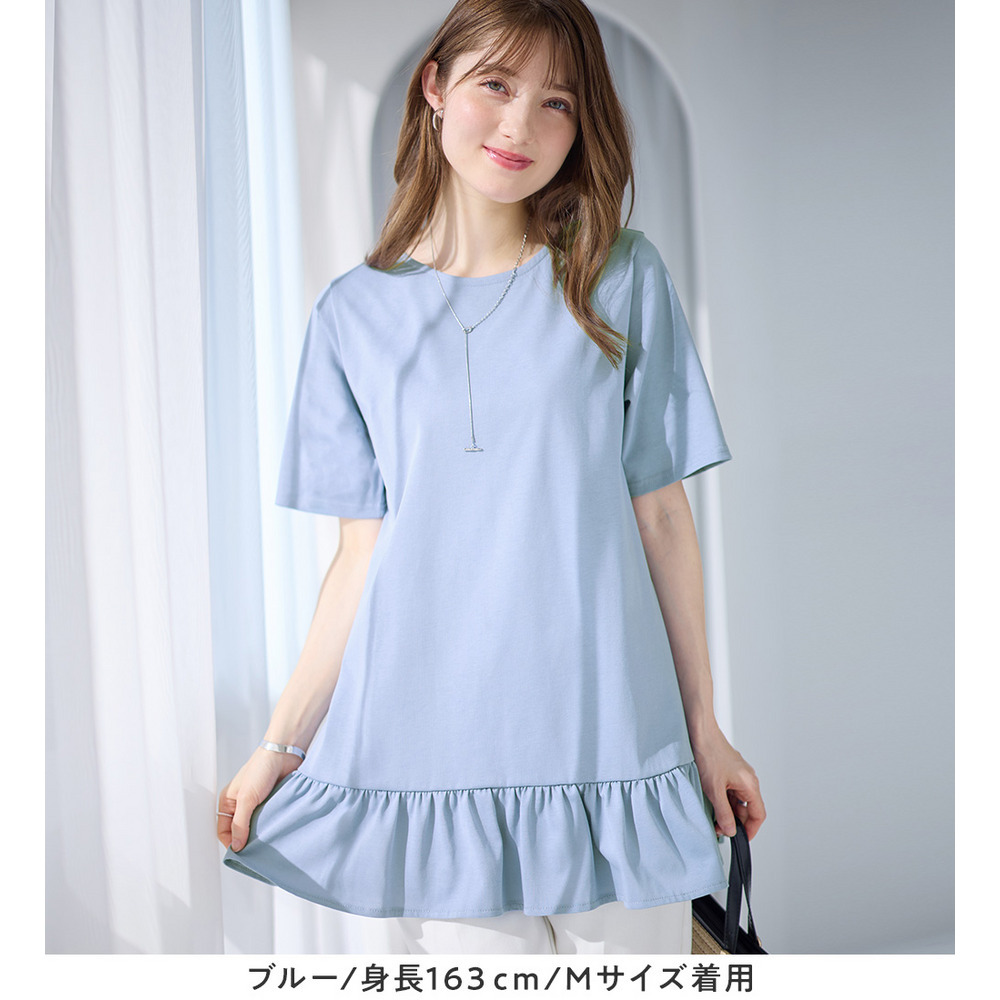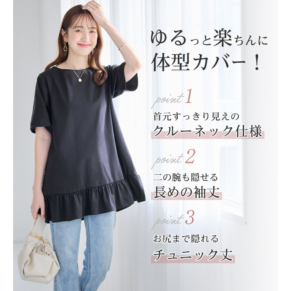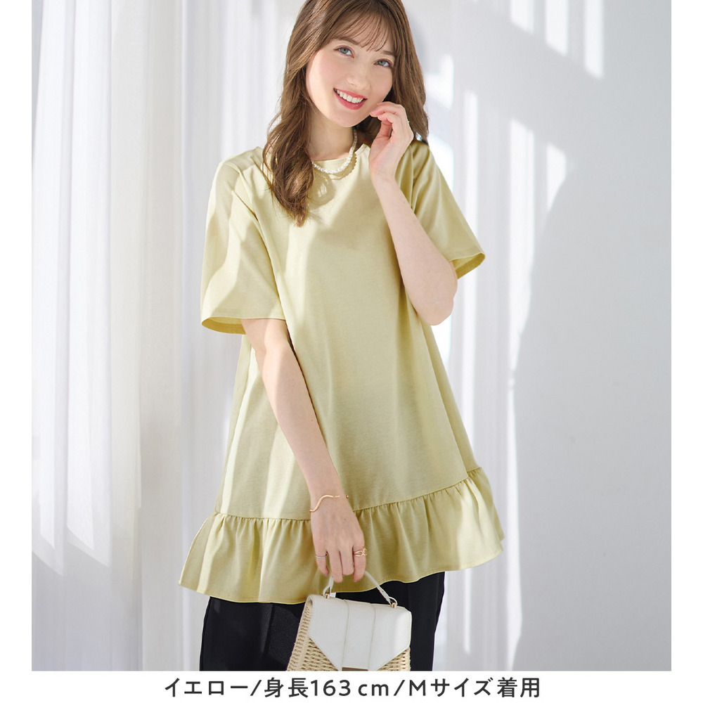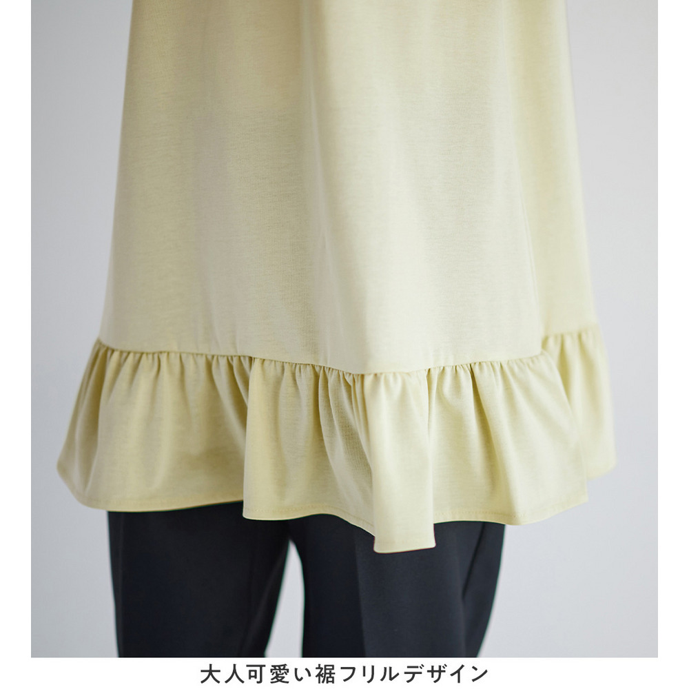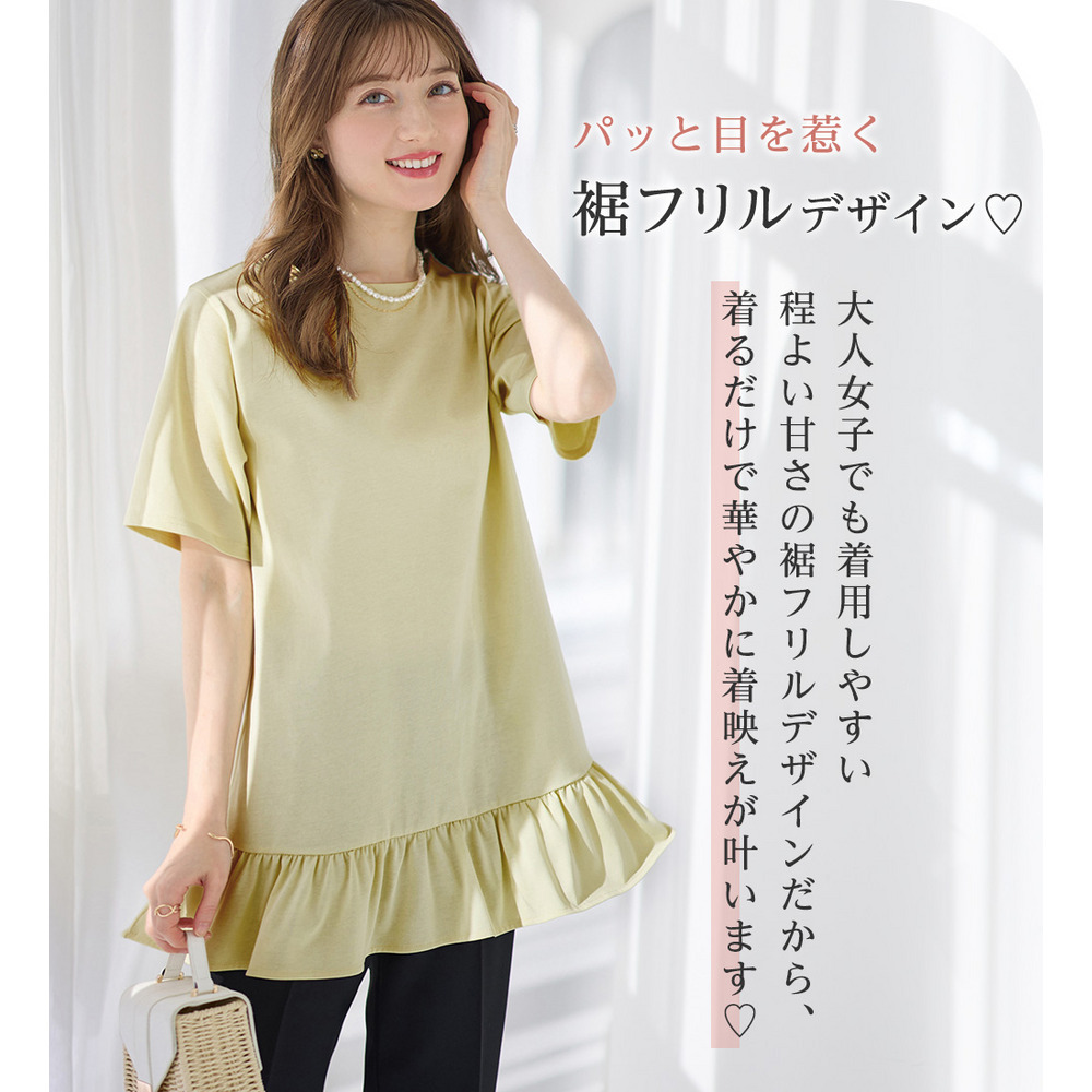 大人可愛い!裾フリルデザインチュニックTシャツ