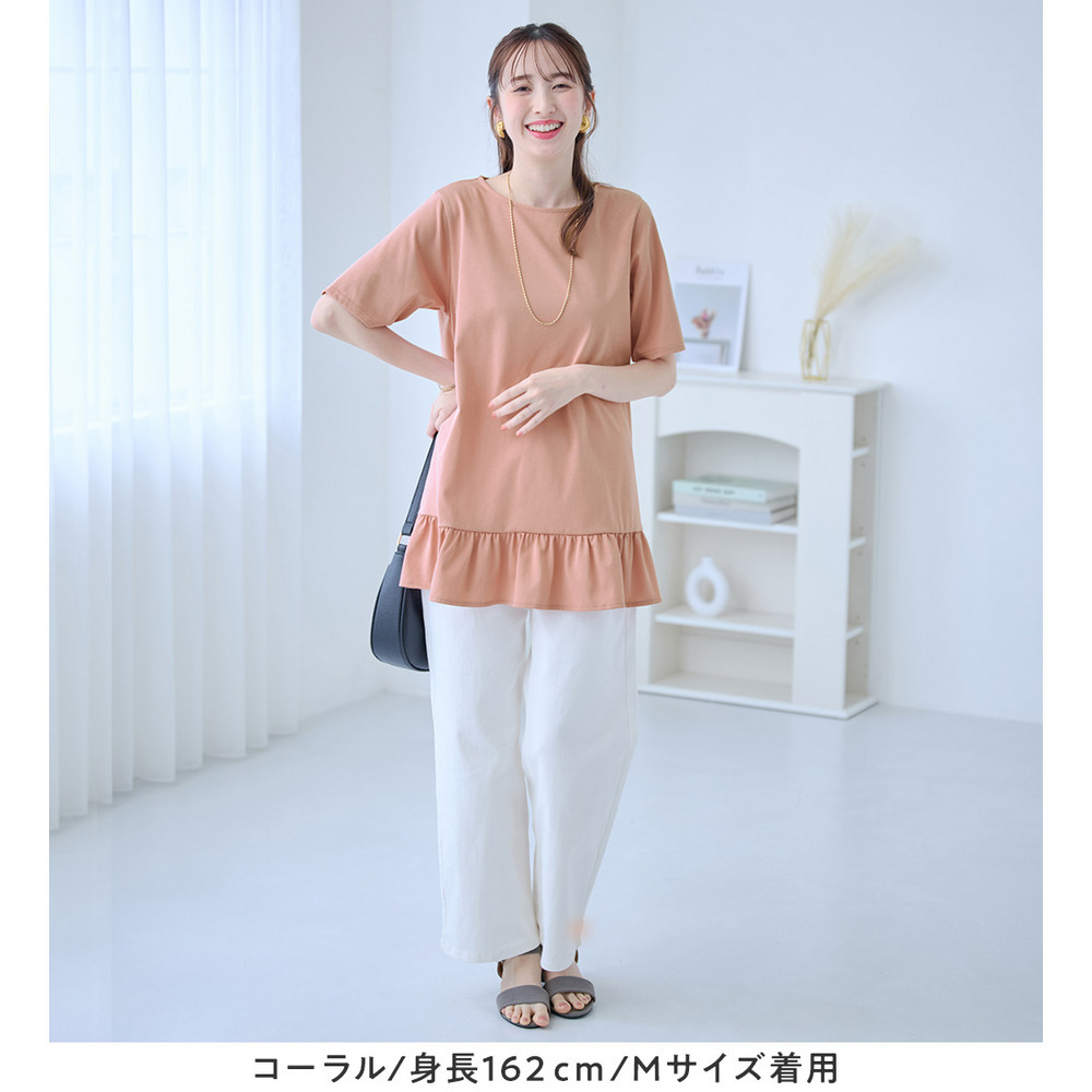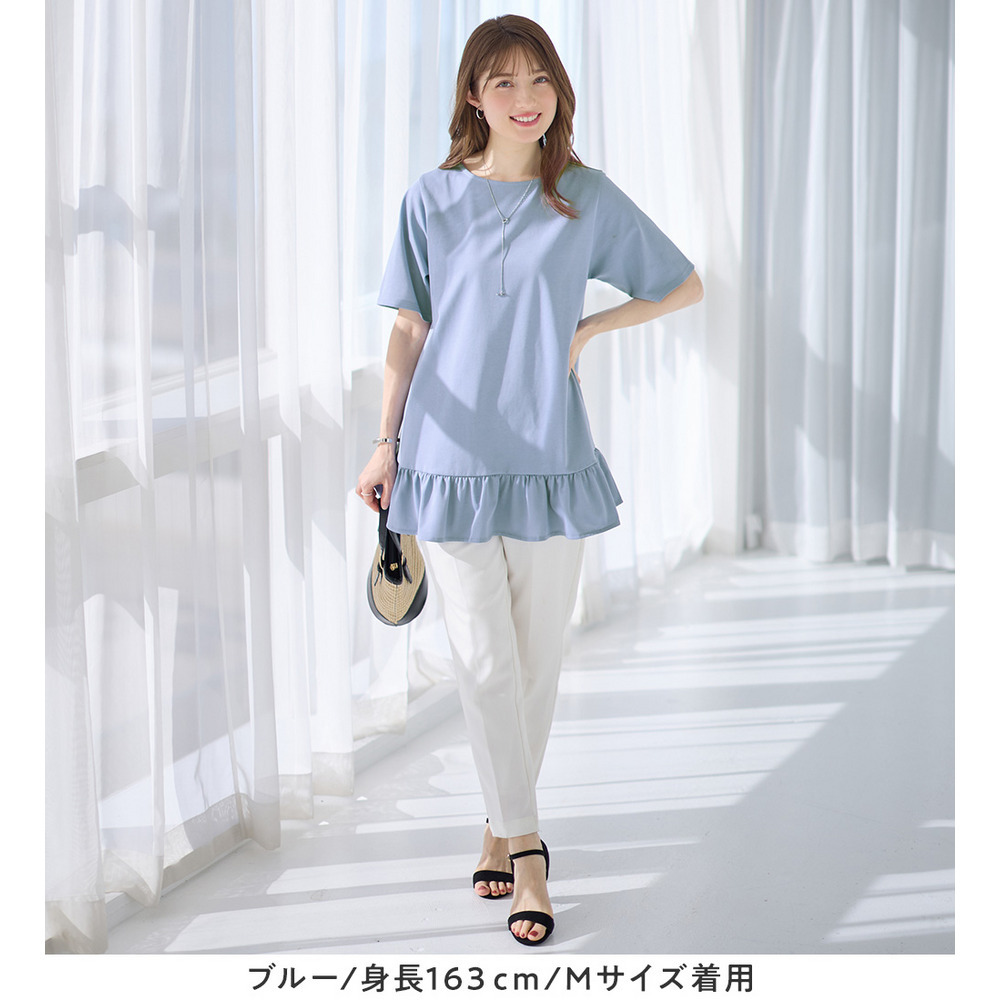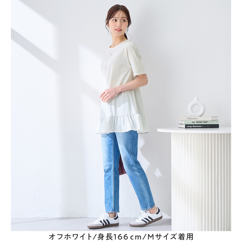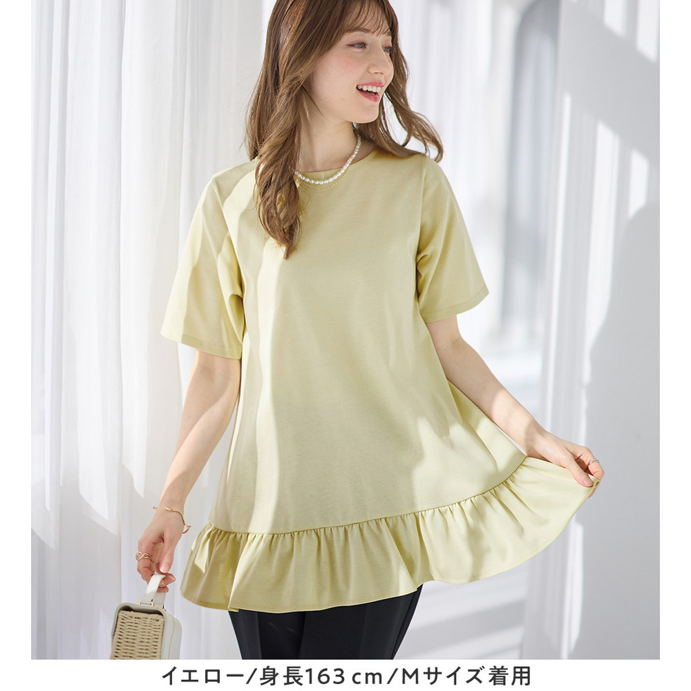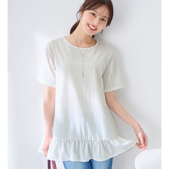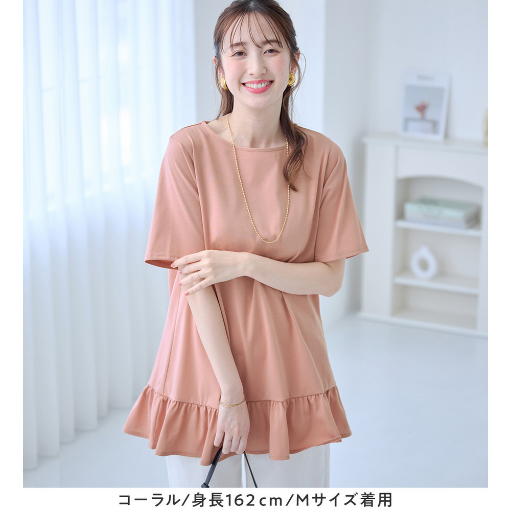 大人可愛い!裾フリルデザインチュニックTシャツ