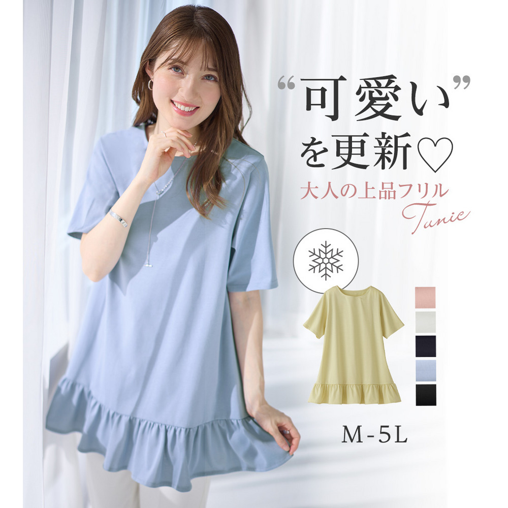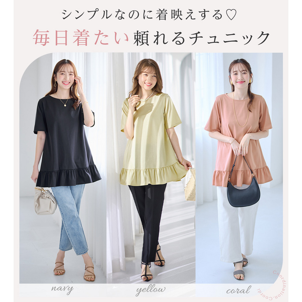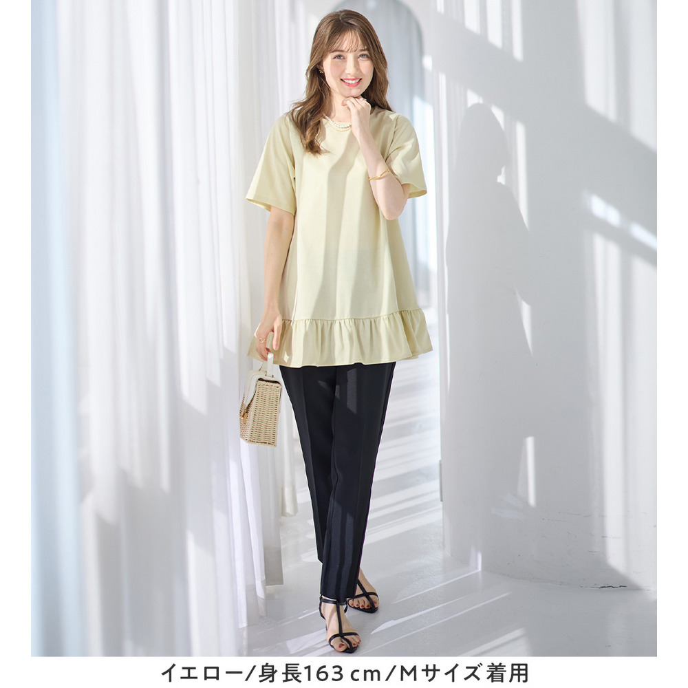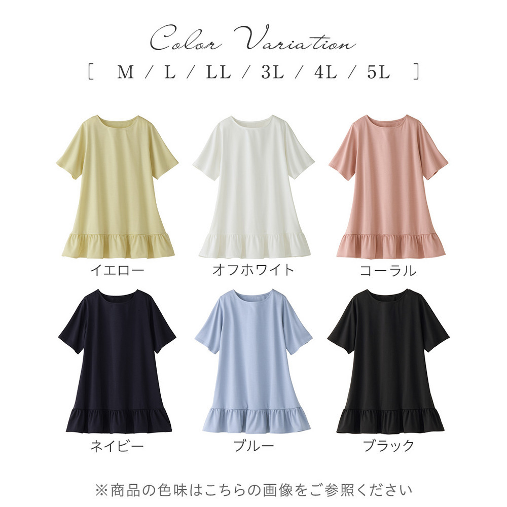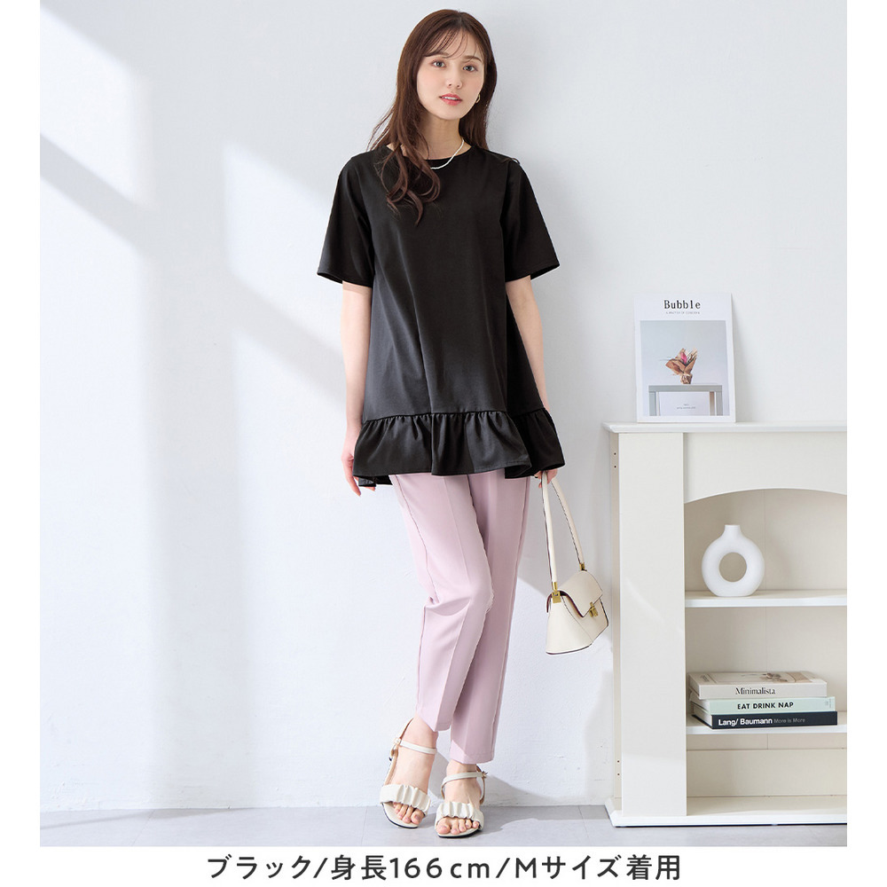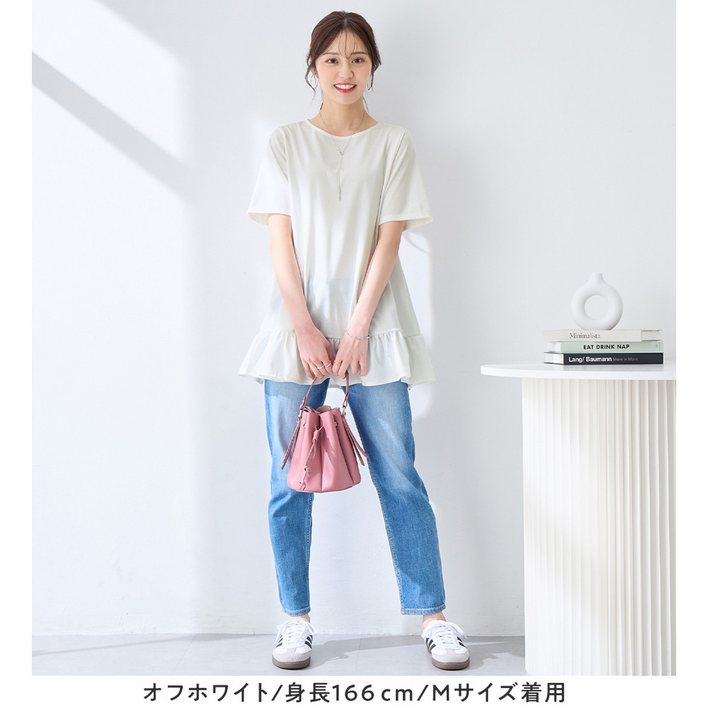大人可愛い!裾フリルデザインチュニックTシャツ