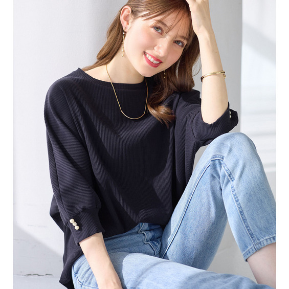 • 袖口パールゆるドルマンリブトップス25