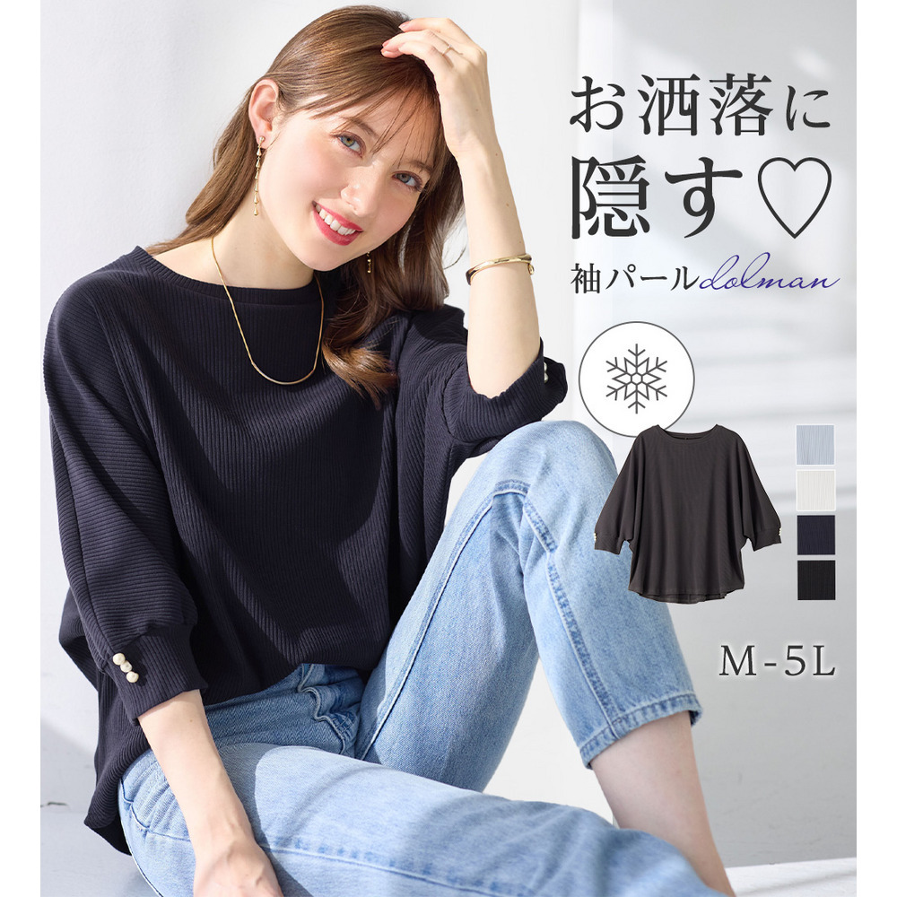 • 袖口パールゆるドルマンリブトップス20