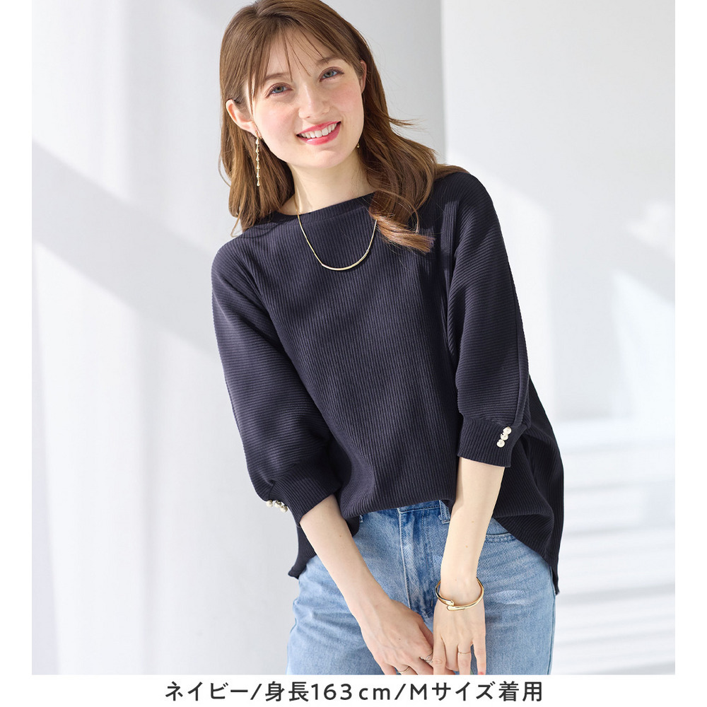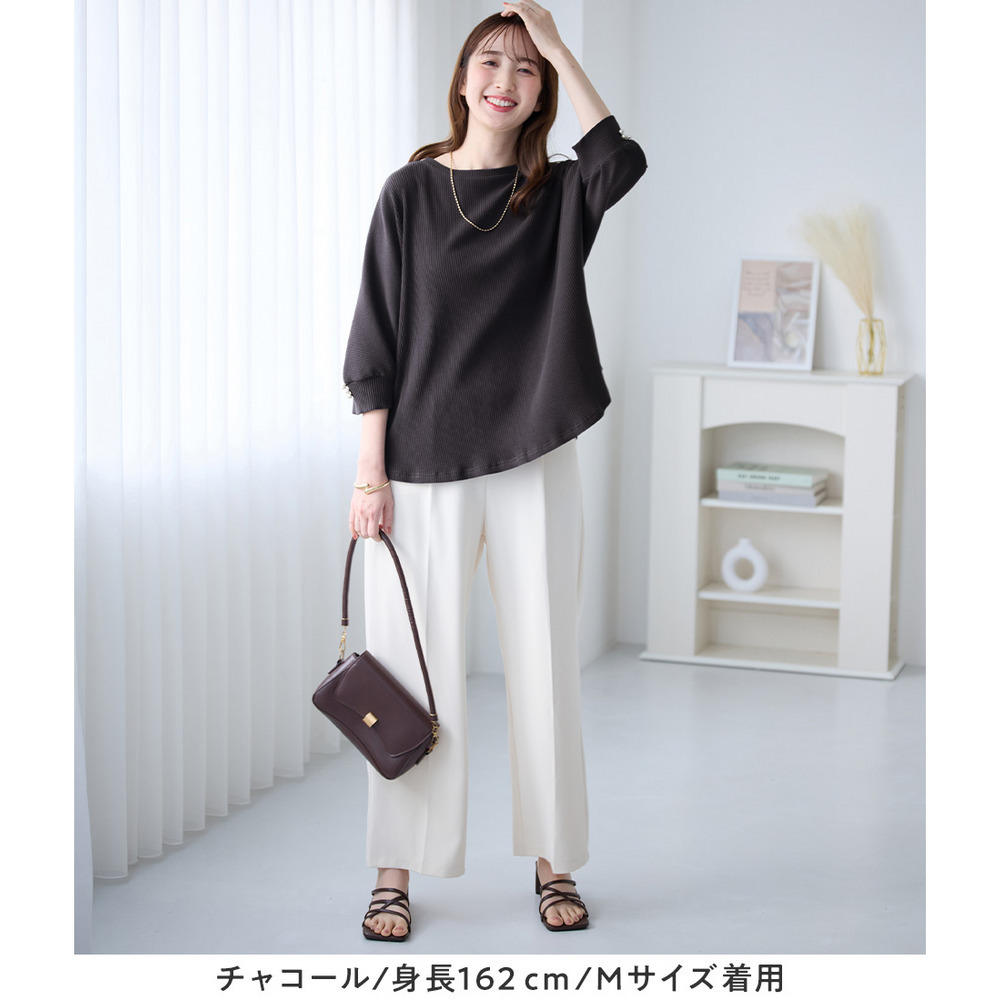 ・袖口パール調ボタンが上品さをプラス