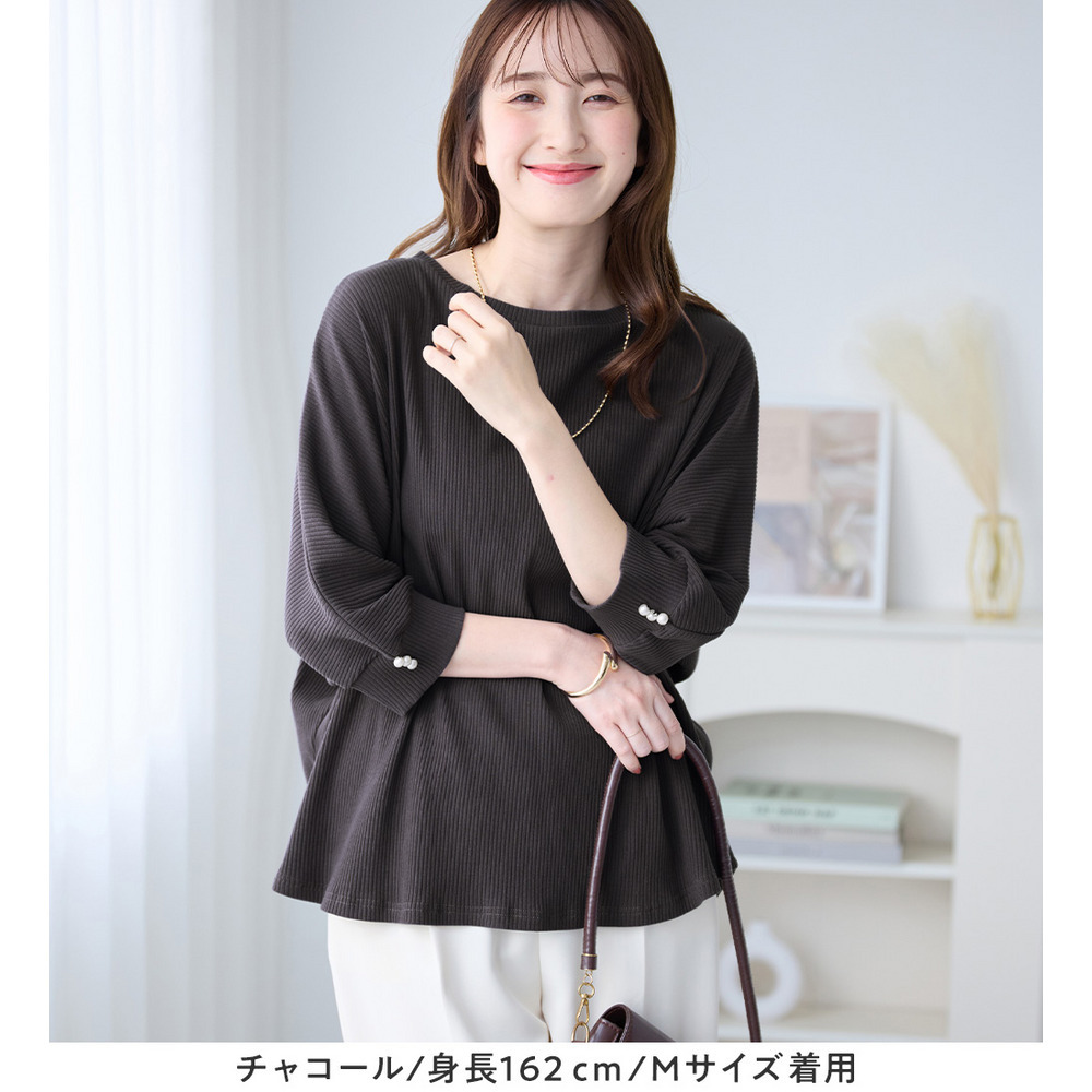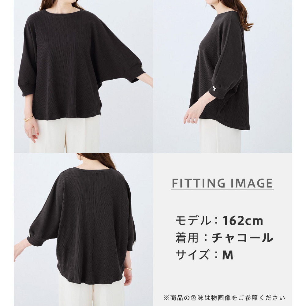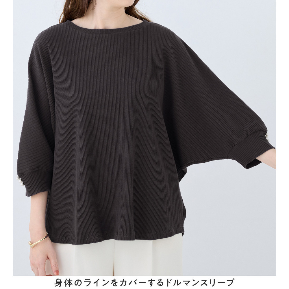 • 袖口パールゆるドルマンリブトップス3