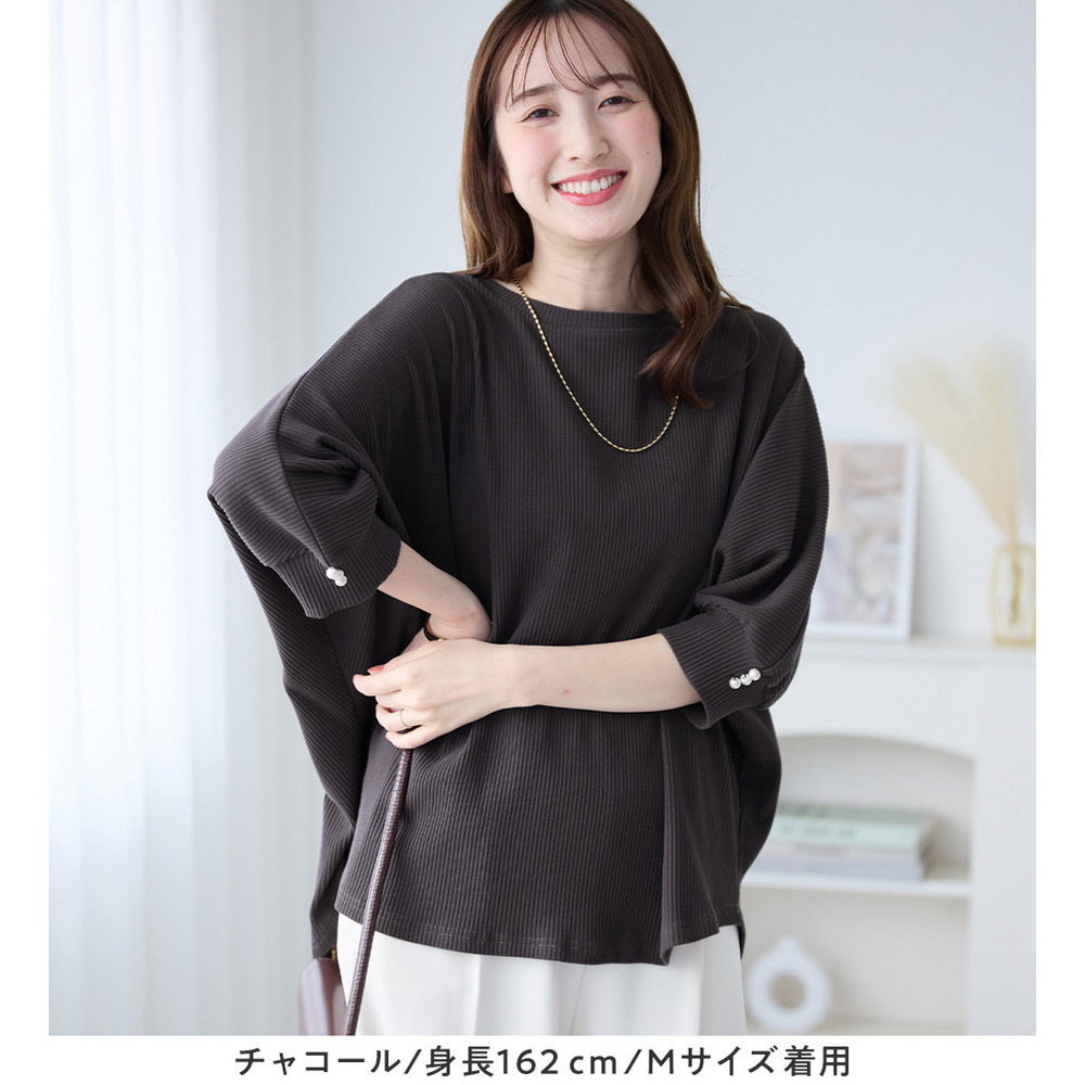 • 袖口パールゆるドルマンリブトップス5