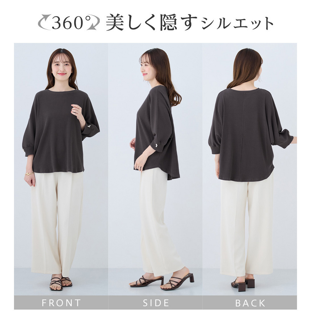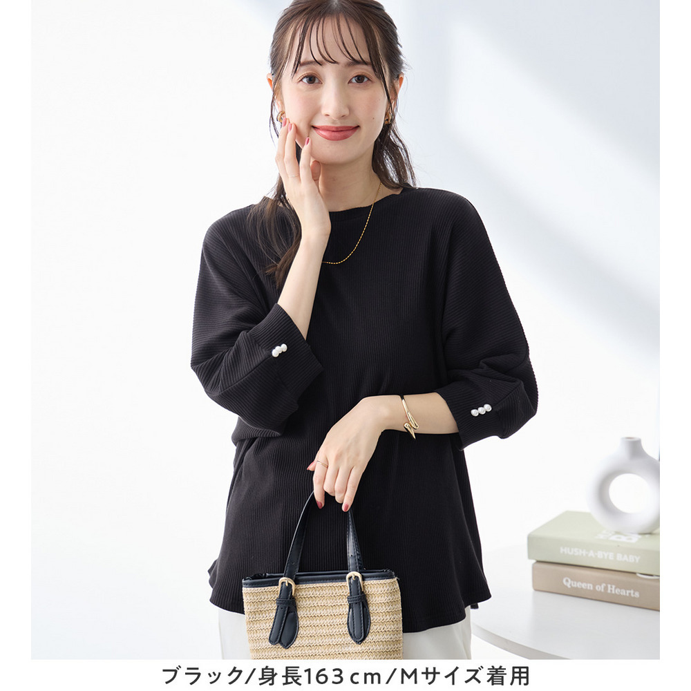 • 袖口パールゆるドルマンリブトップス12