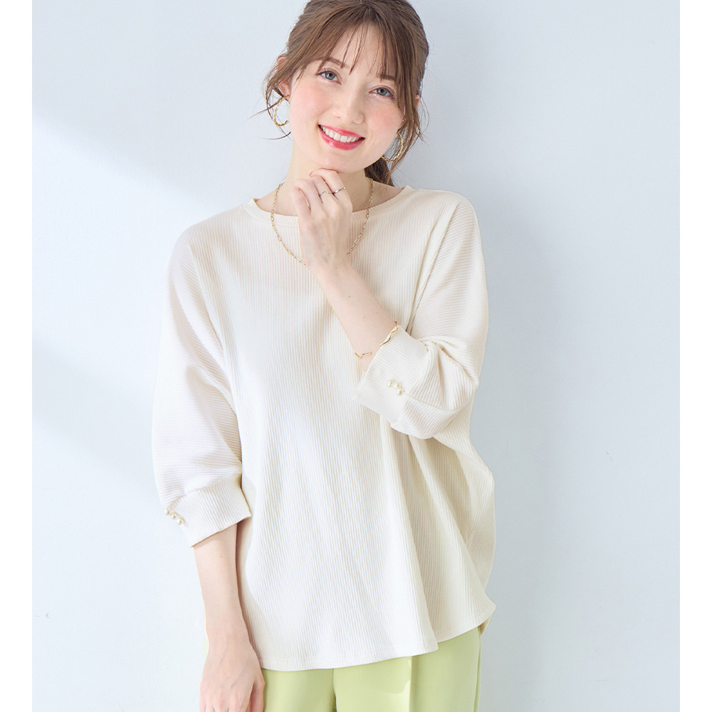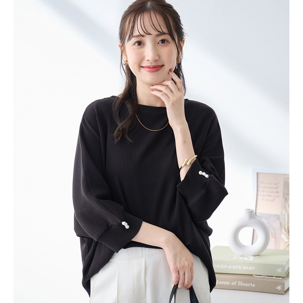 • 袖口パールゆるドルマンリブトップス10