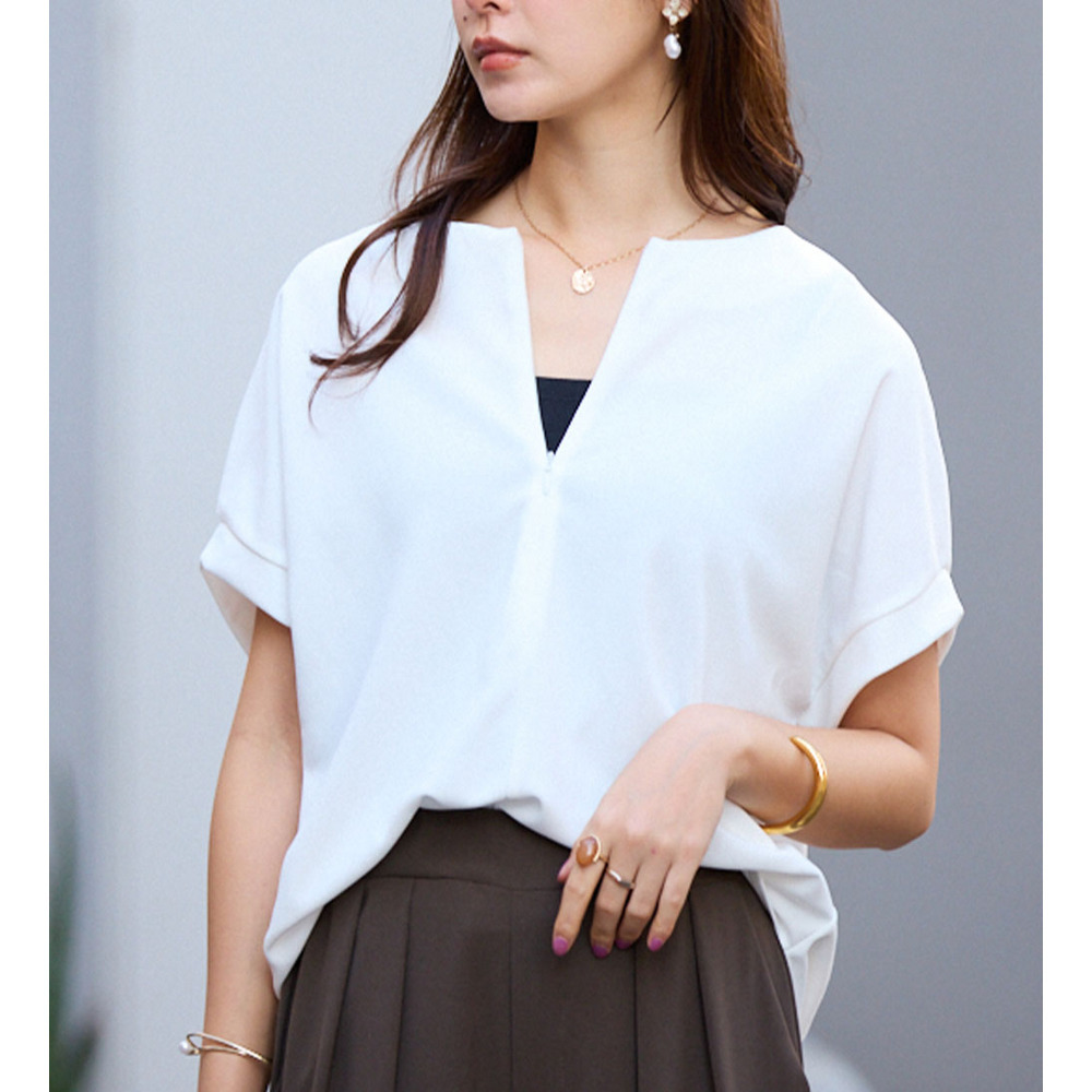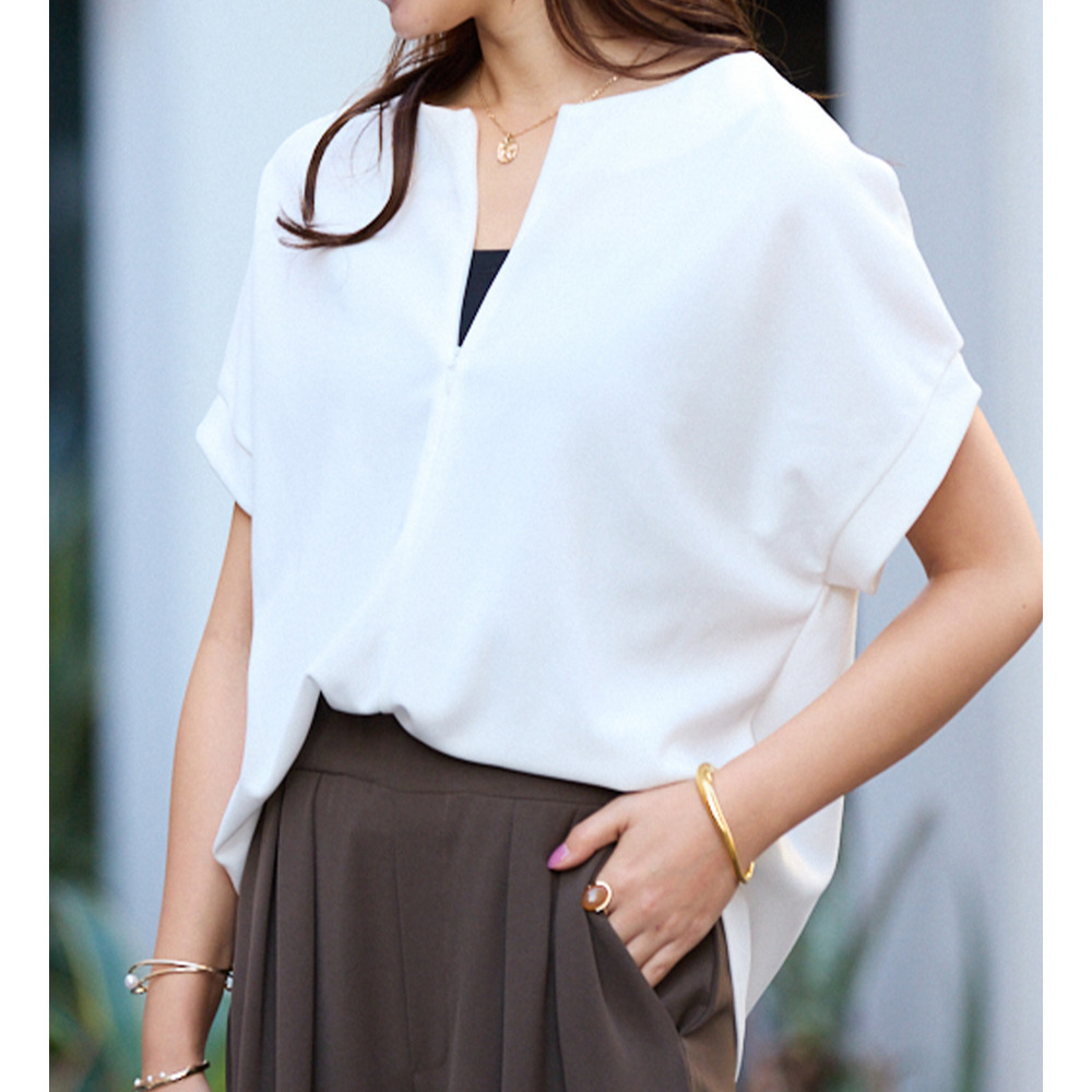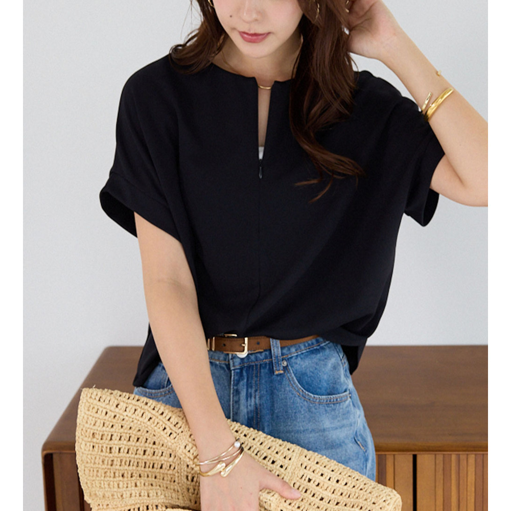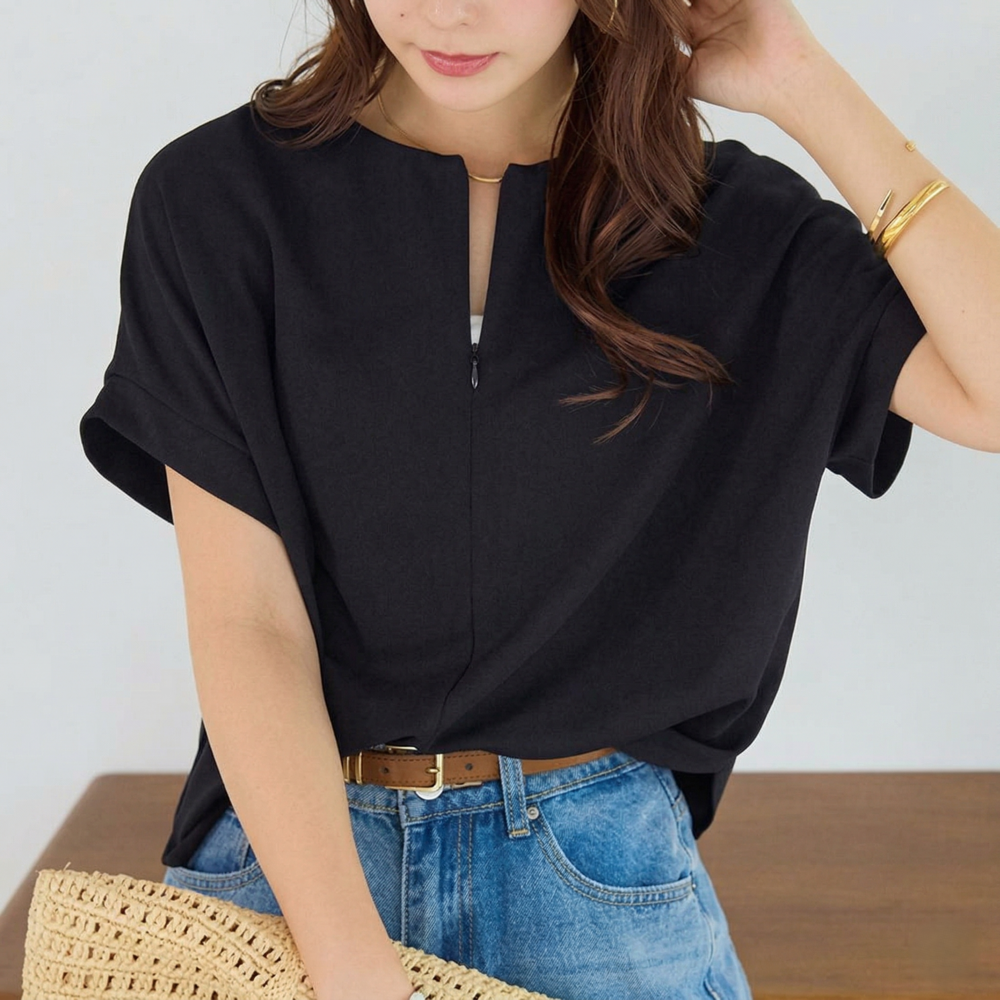 シンプルなドロップショルダーデザインに、フロントのコンシールファスナーがこなれたアクセントに。
