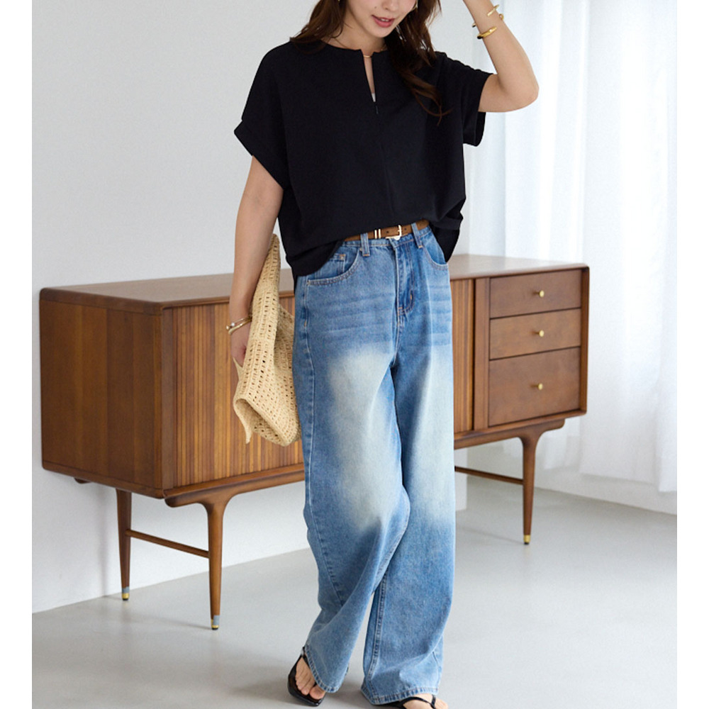 前はウエストインでバランスよく絶妙な丈感なので、パンツはもちろんスカートとも好相性です