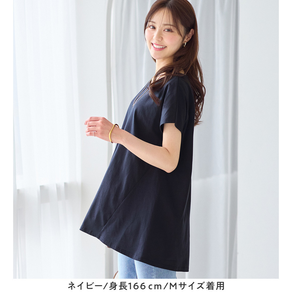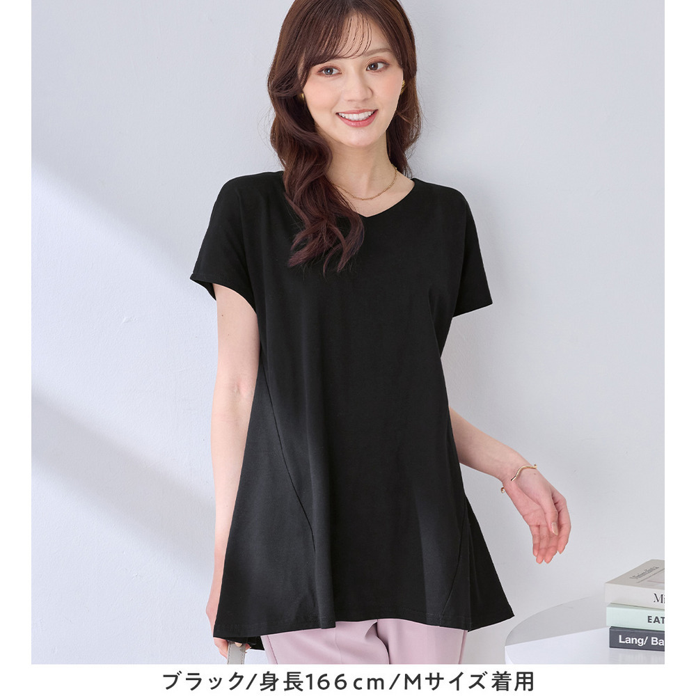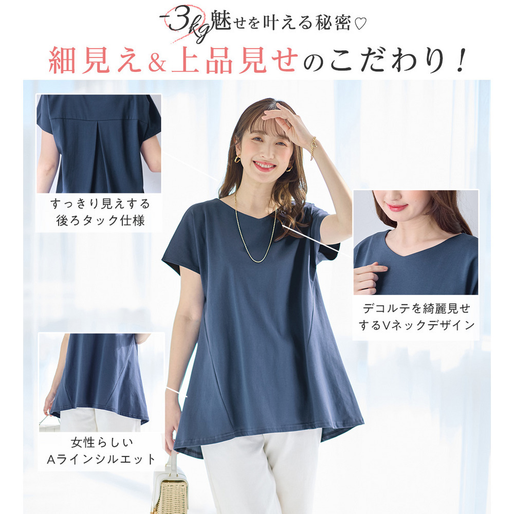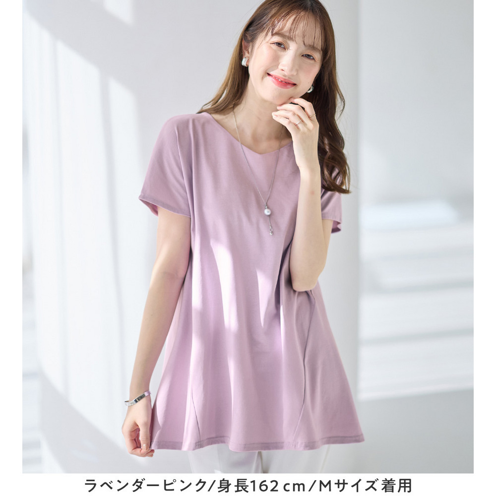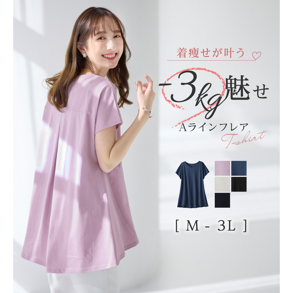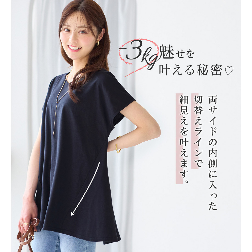 <-3kg>細見え叶う!AラインフレアチュニックTシャツ