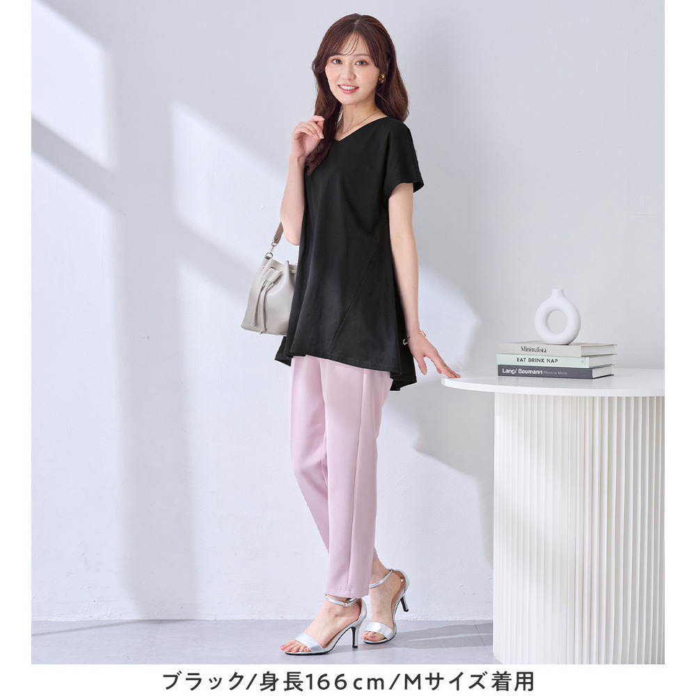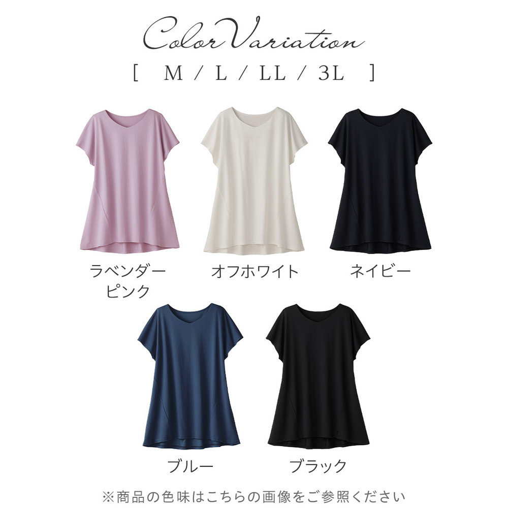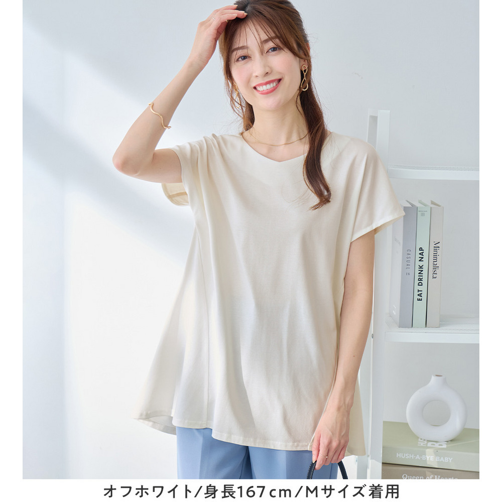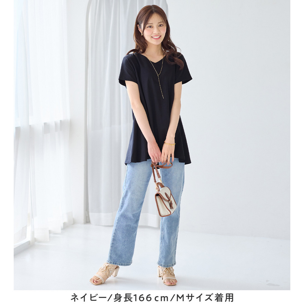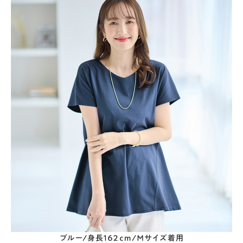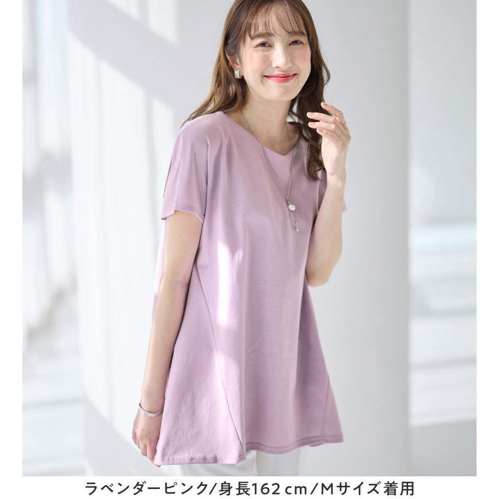 <-3kg>細見え叶う!AラインフレアチュニックTシャツ