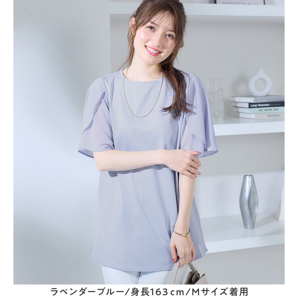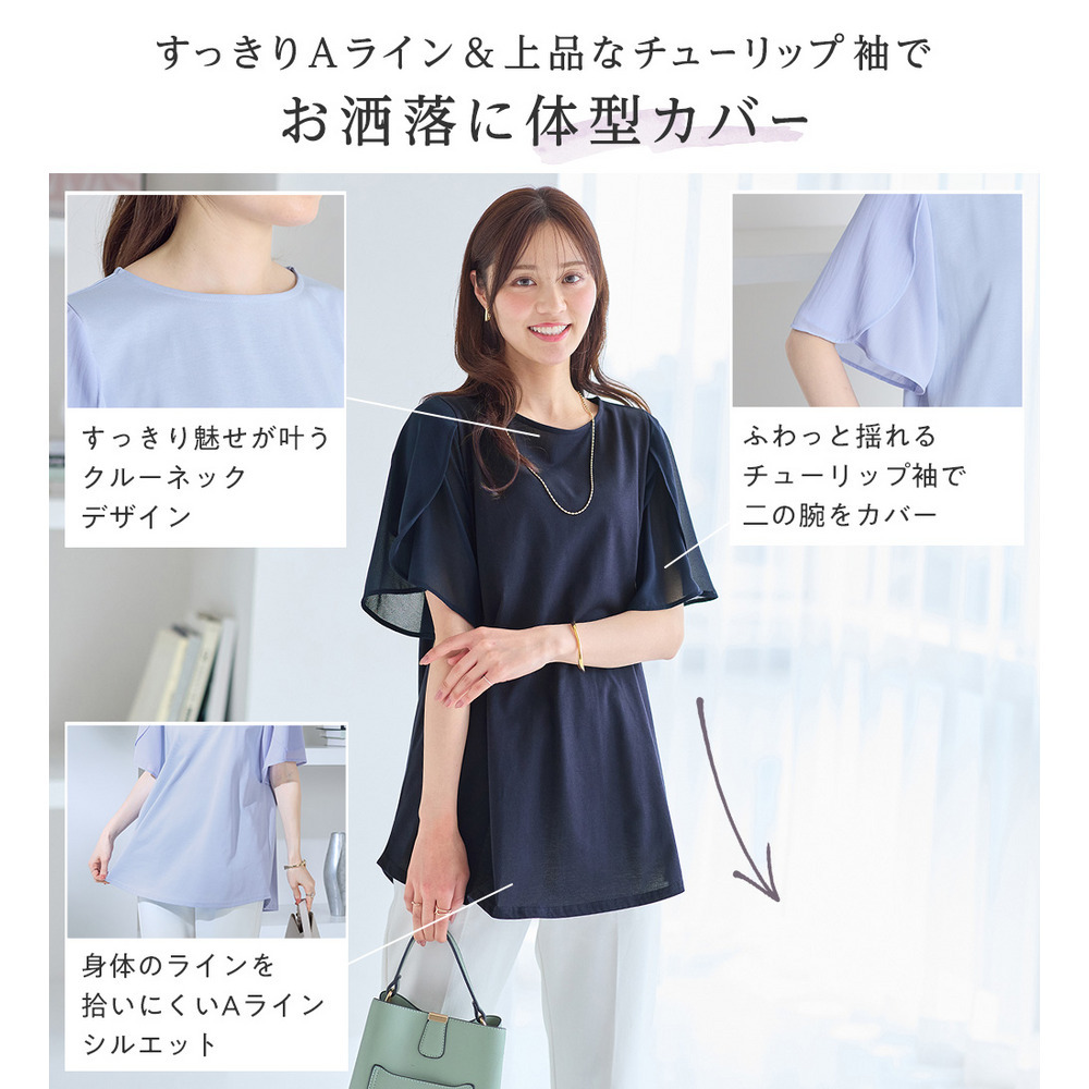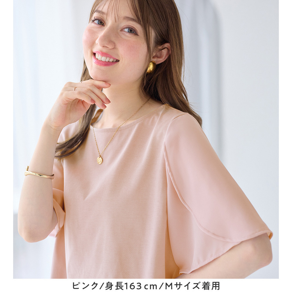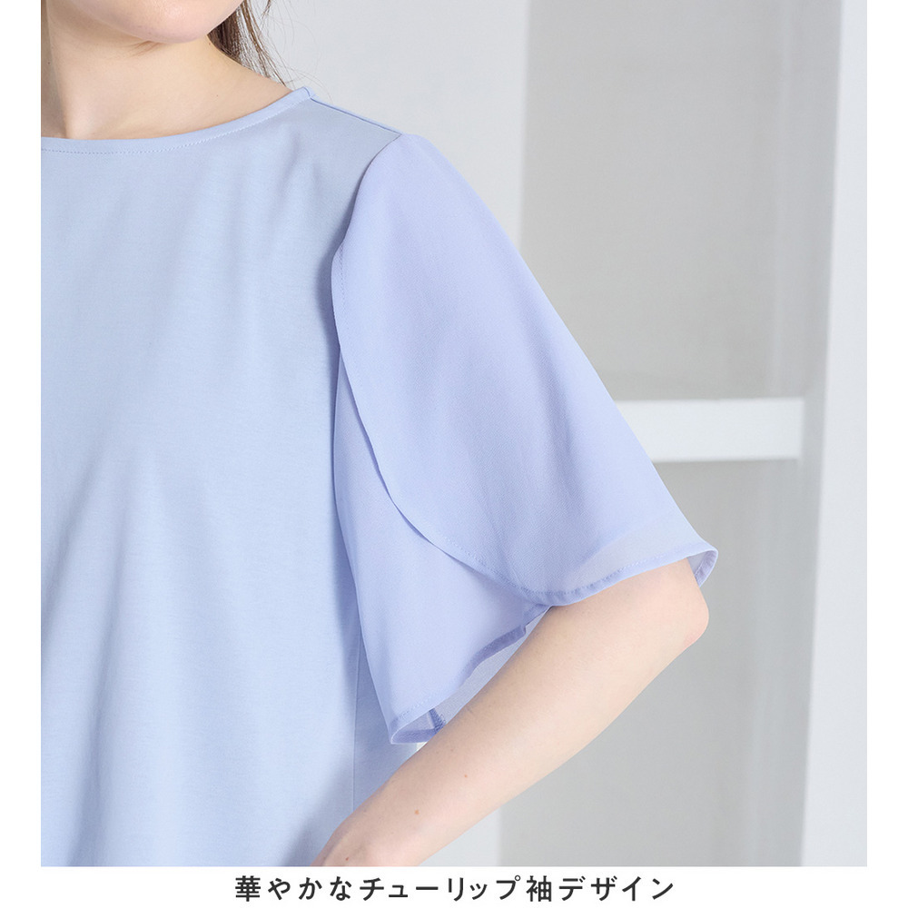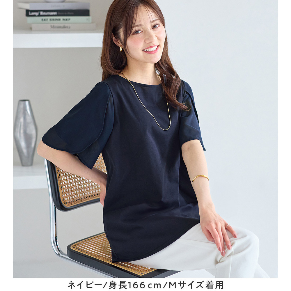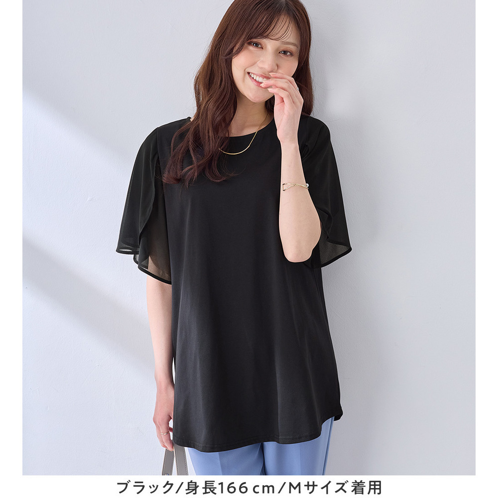 シフォン切替チューリップ袖チュニックTシャツ