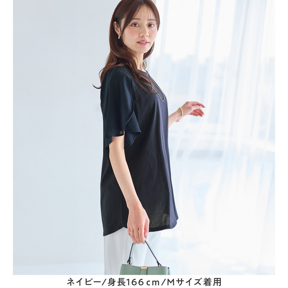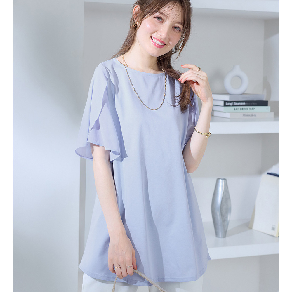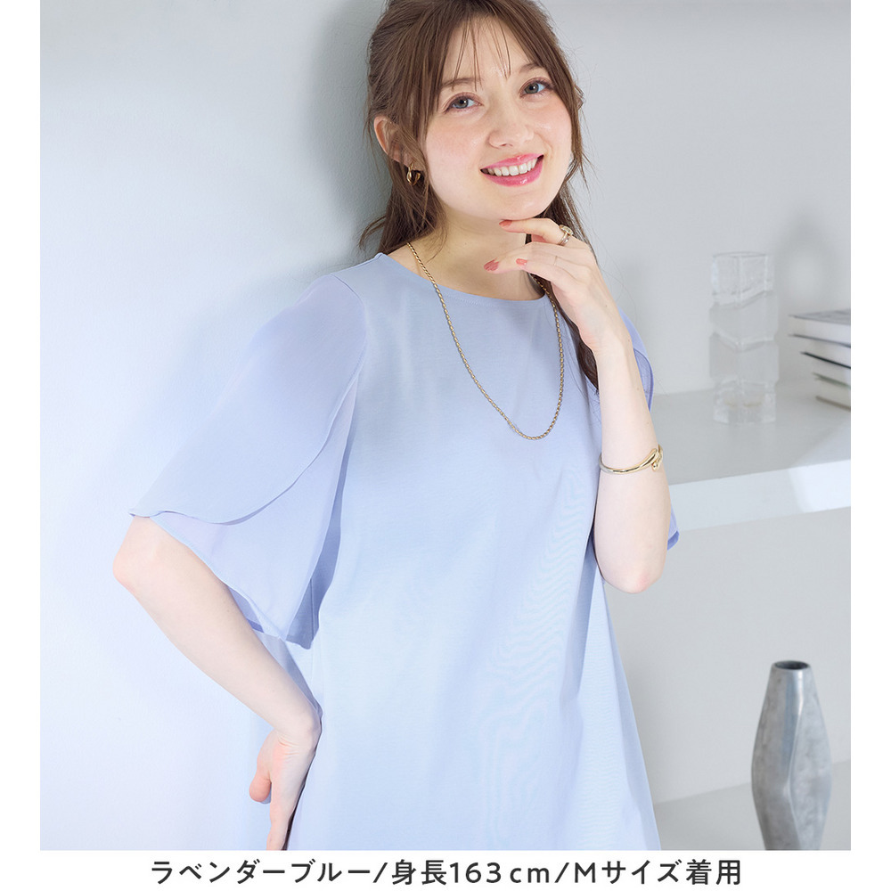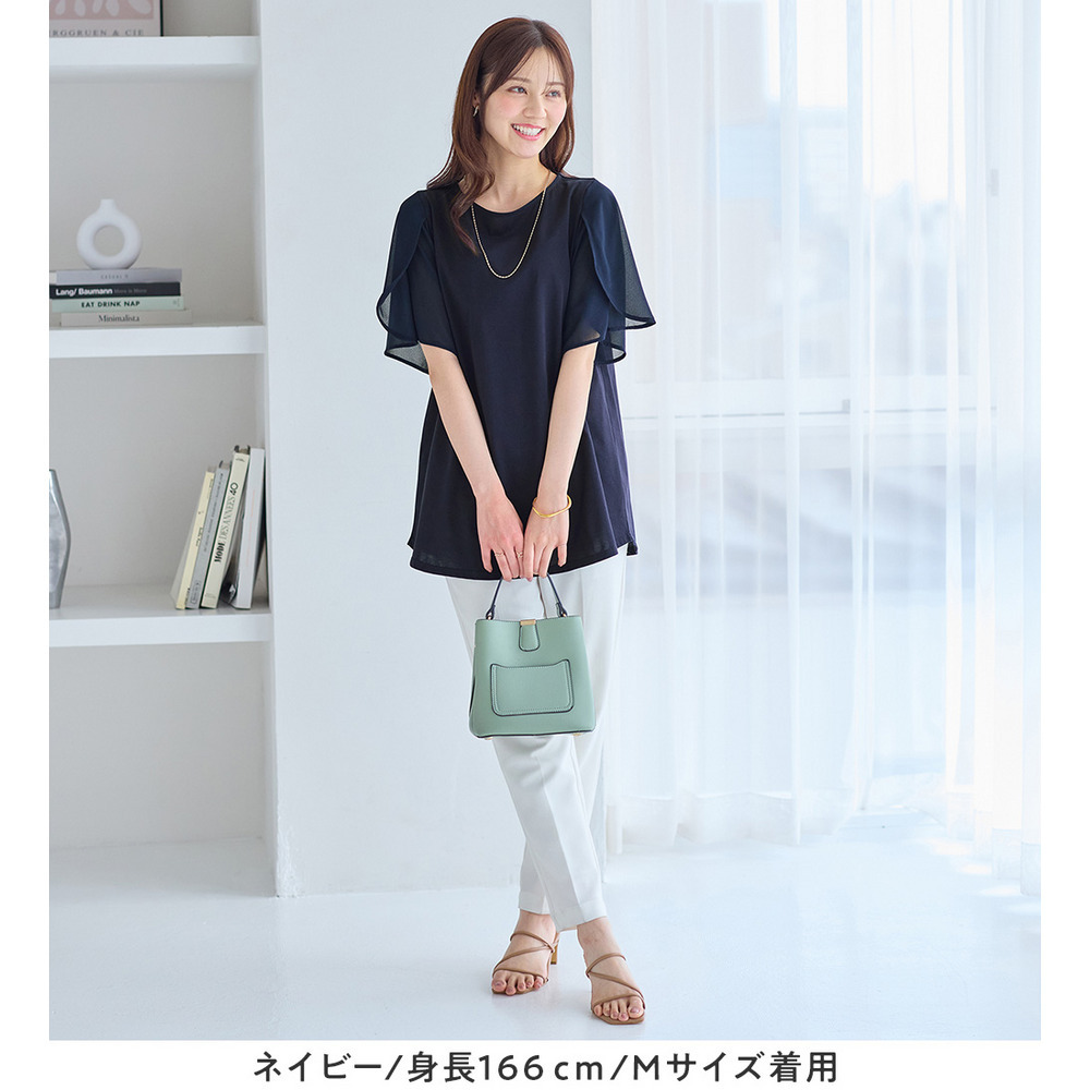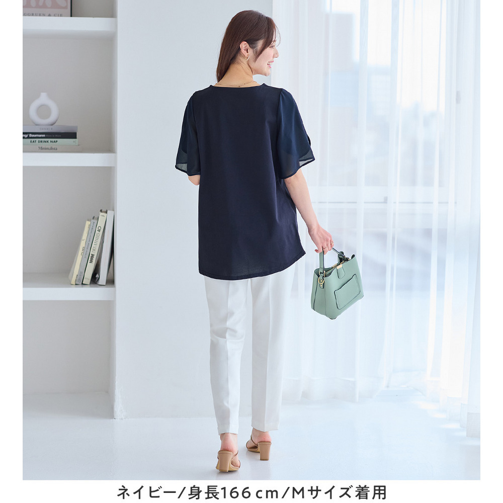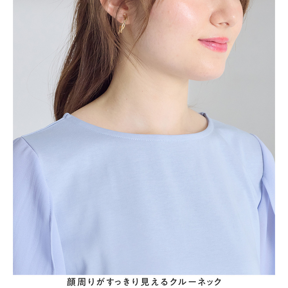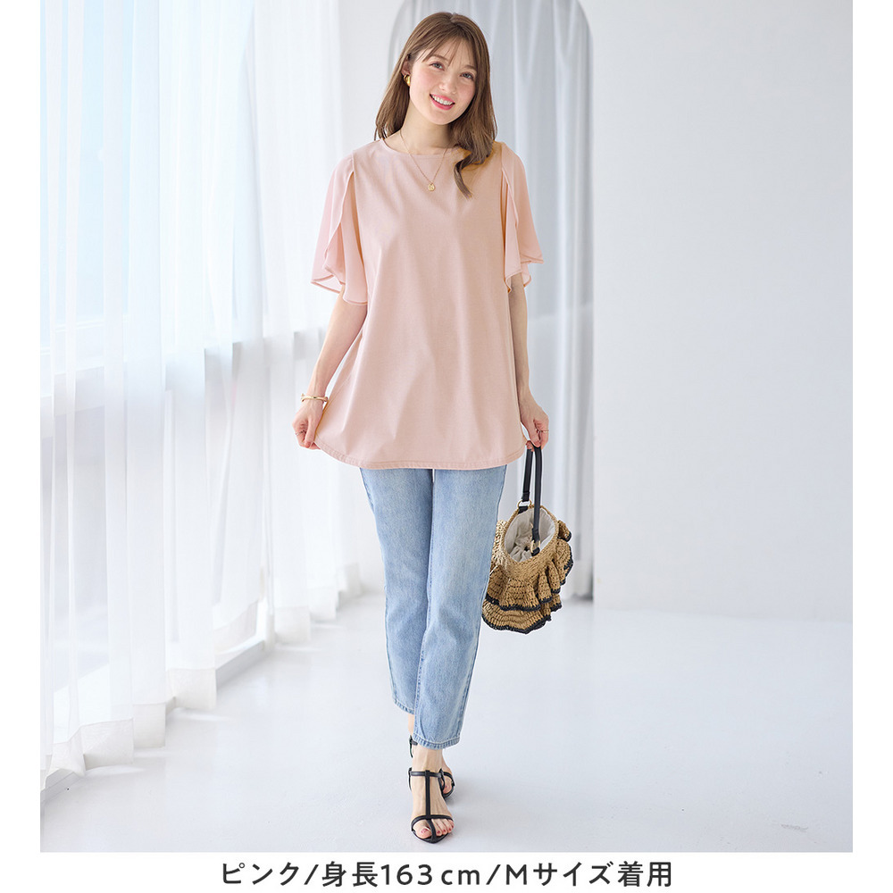 シフォン切替チューリップ袖チュニックTシャツ