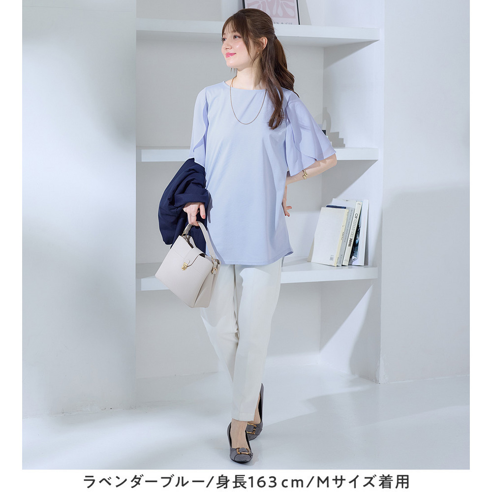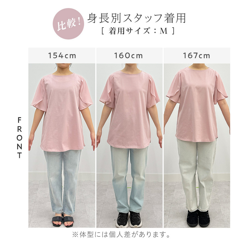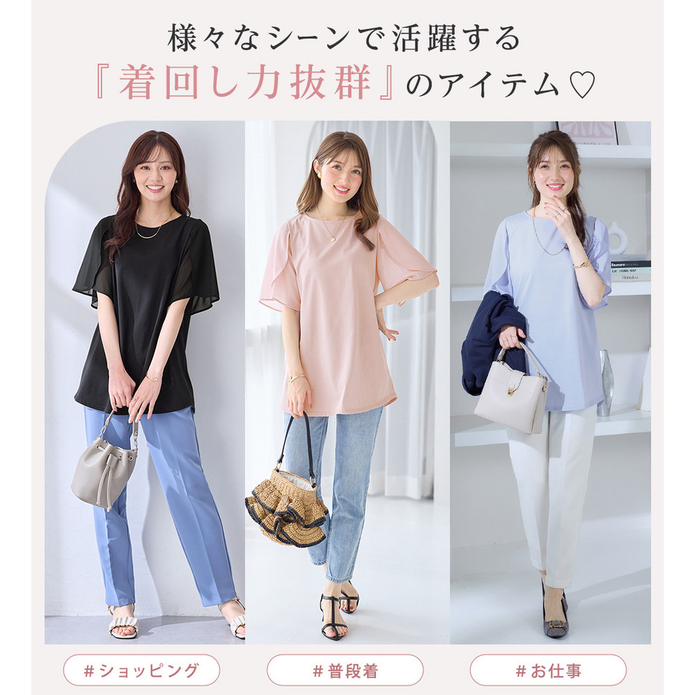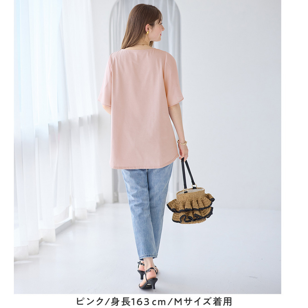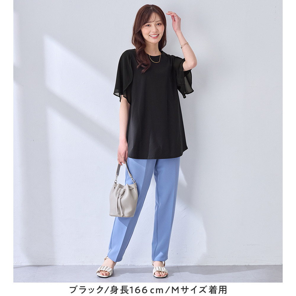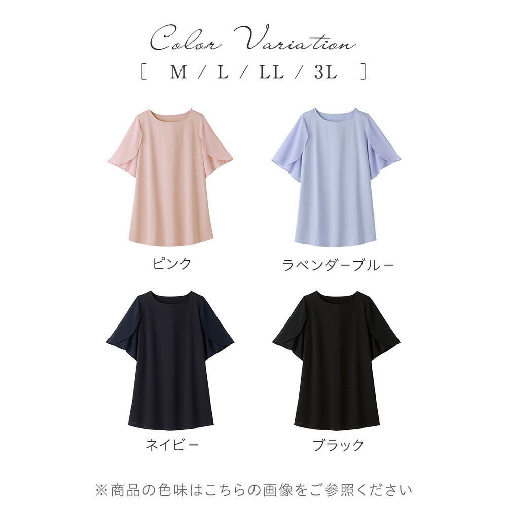 シフォン切替チューリップ袖チュニックTシャツ
