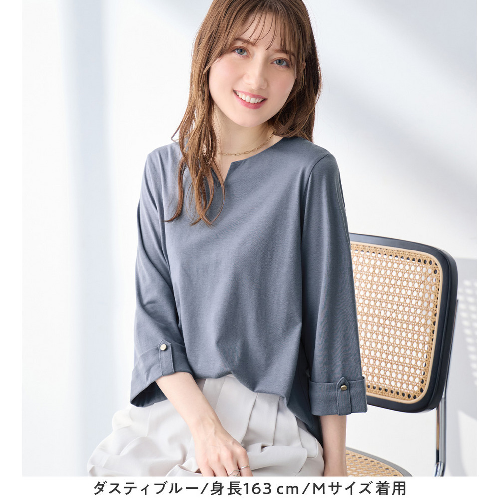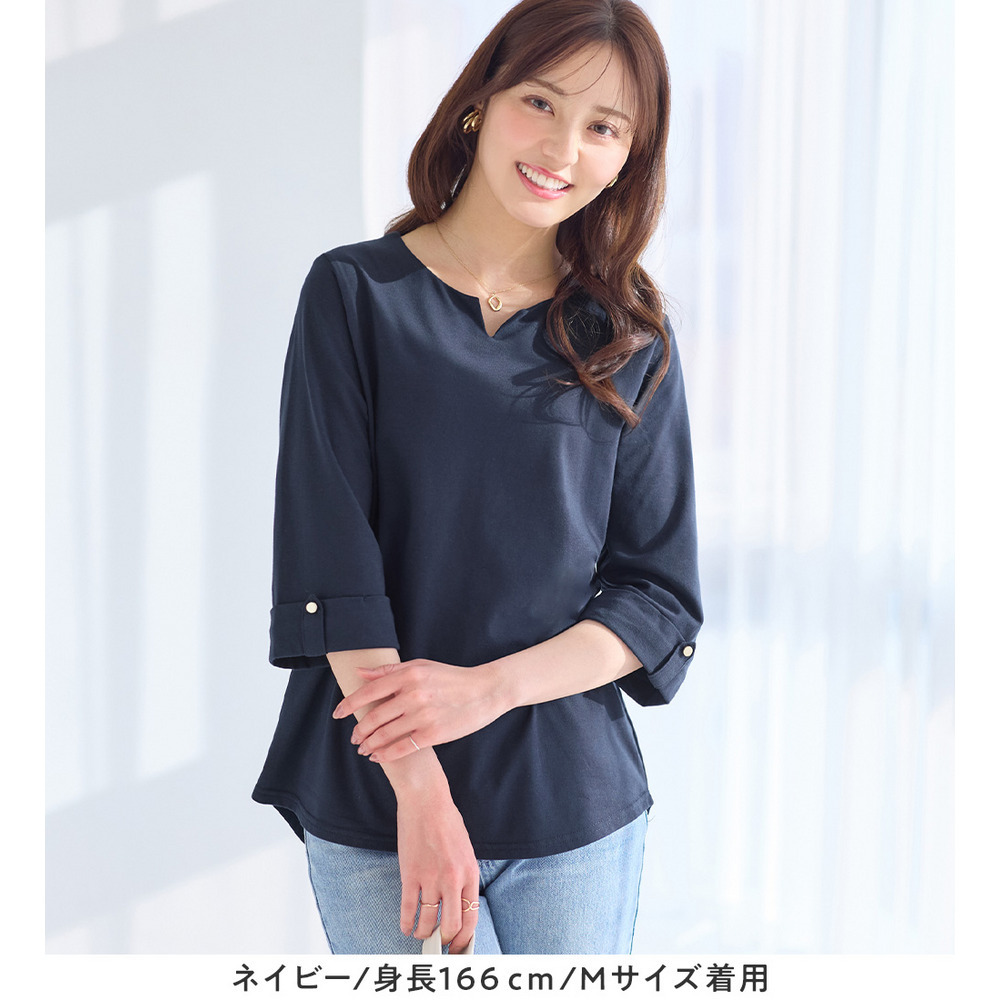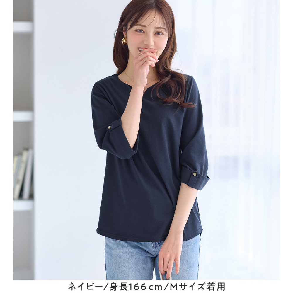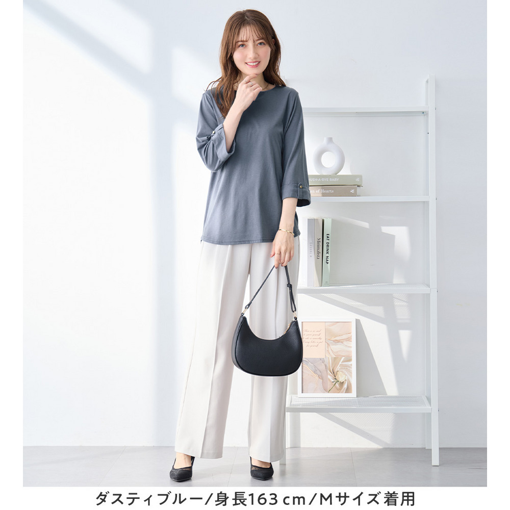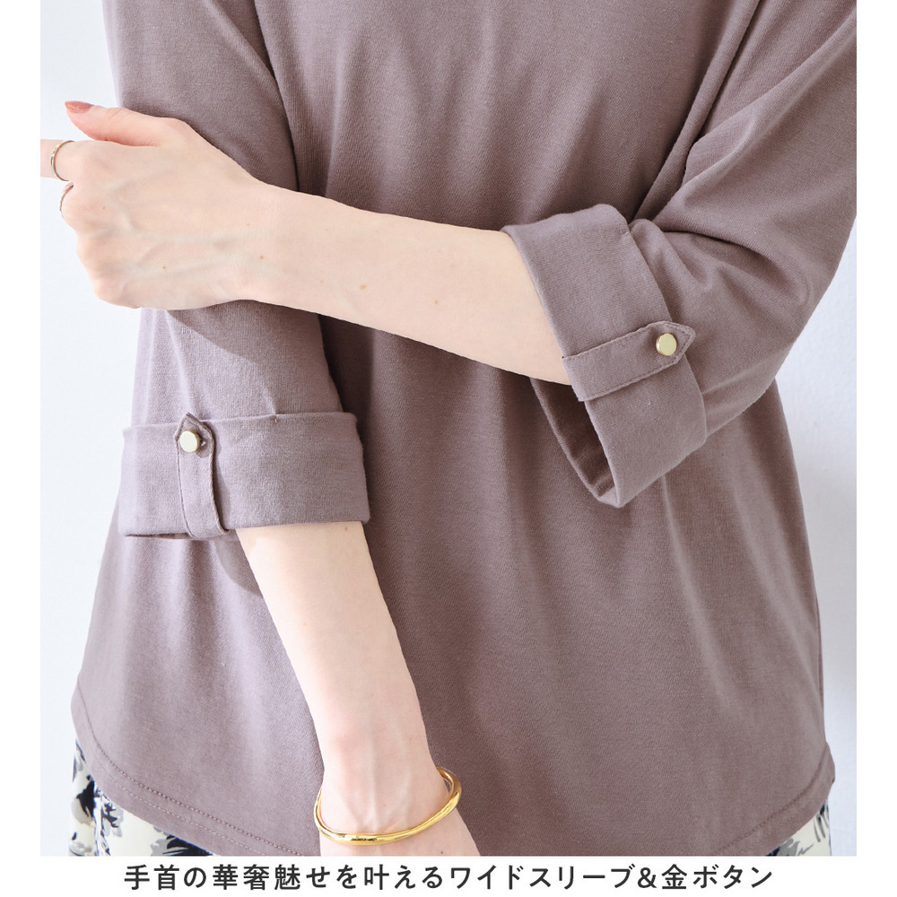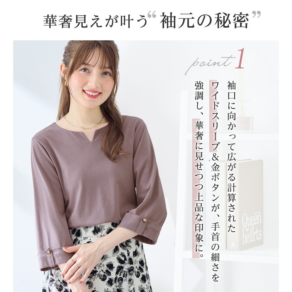 ・ワンポイントになる袖の金ボタンで上品な印象に