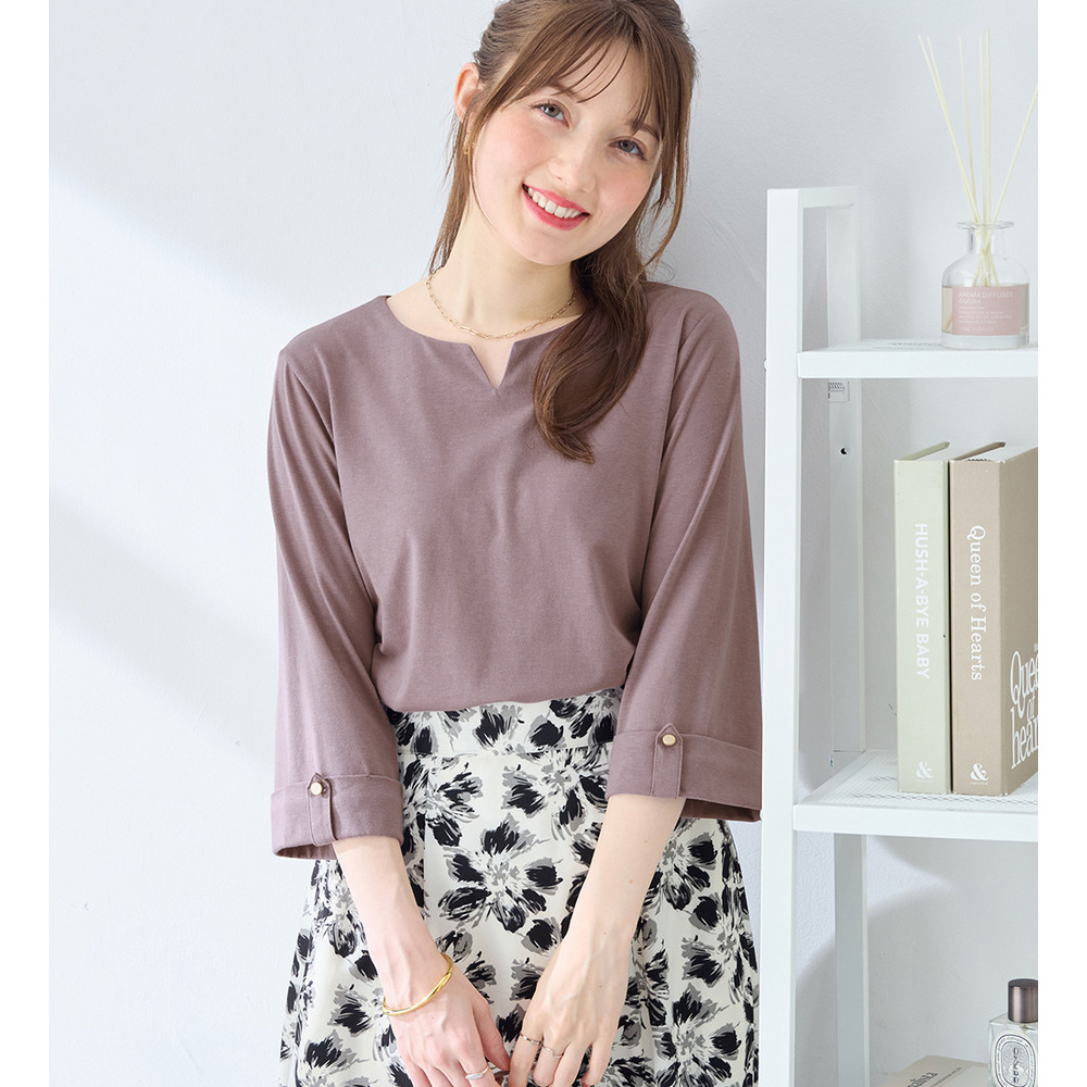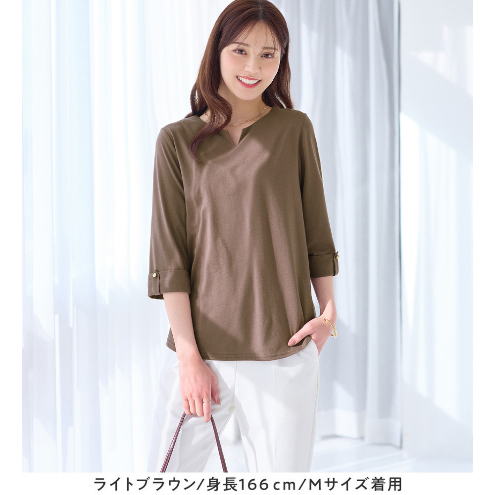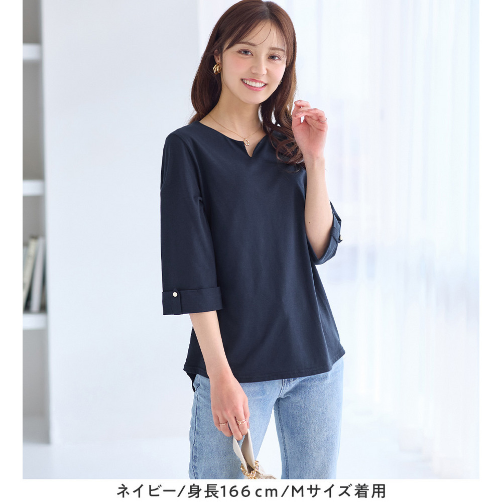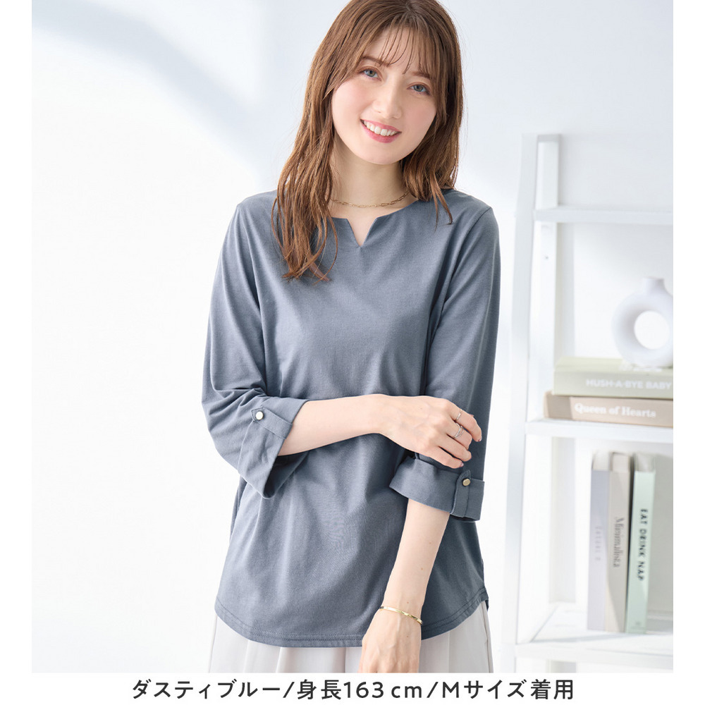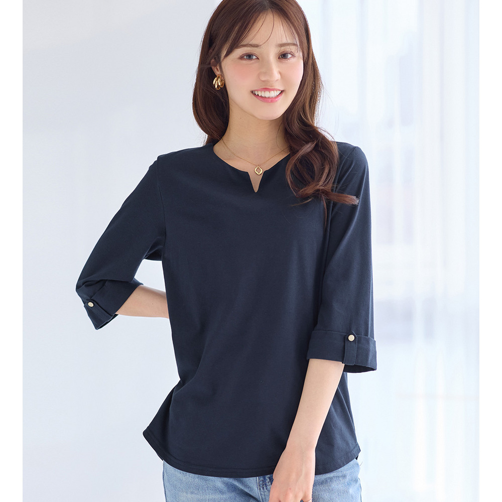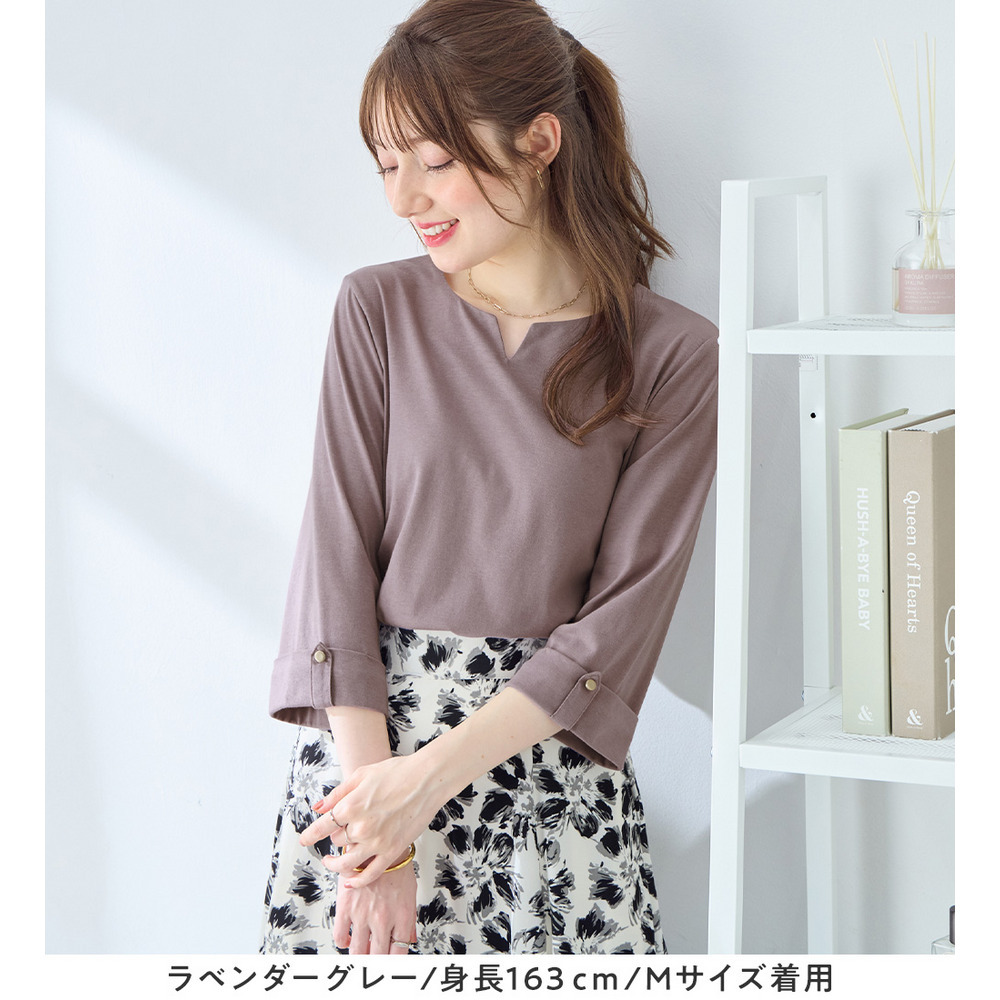 ・ワンポイントになる袖の金ボタンで上品な印象に