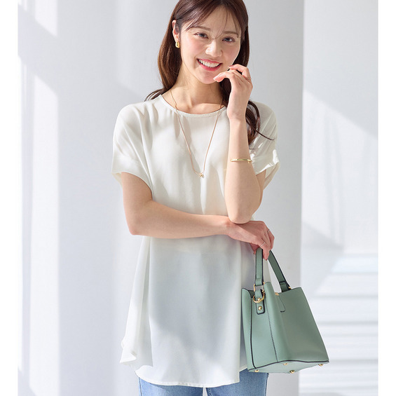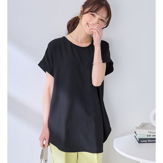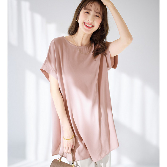 Tシャツ感覚で快適に着こなせる!ジョーゼット素材の上品Tブラウス。