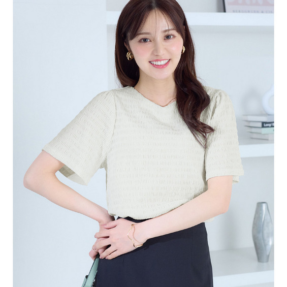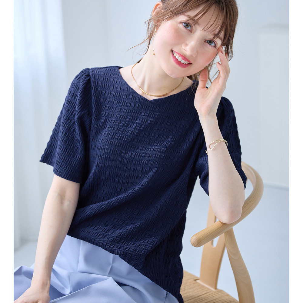 ・すっきりVネックでデコルテ美人魅せ