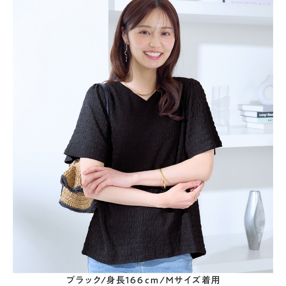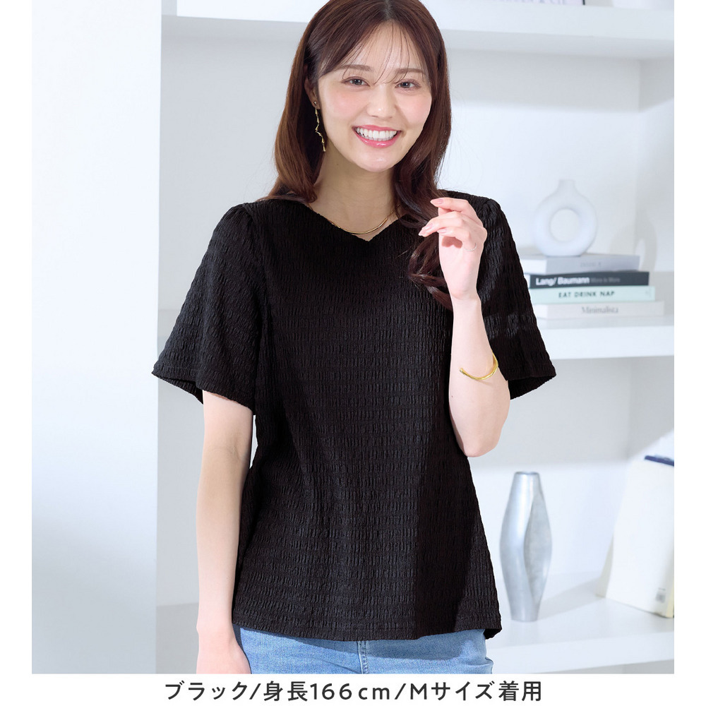 ・表面感のあるカットジャガード素材で1枚で着映える!