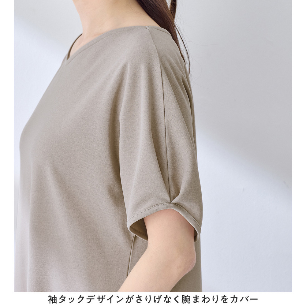 タックを寄せた袖デザインで、さりげなく腕まわりをカバー。