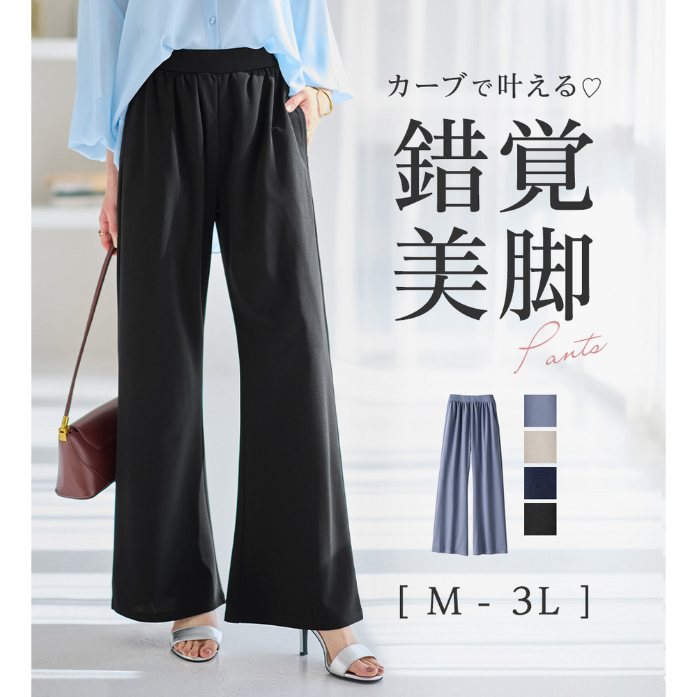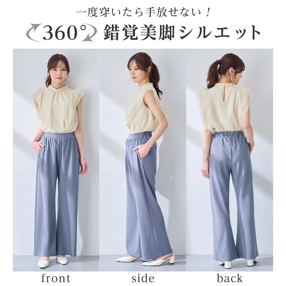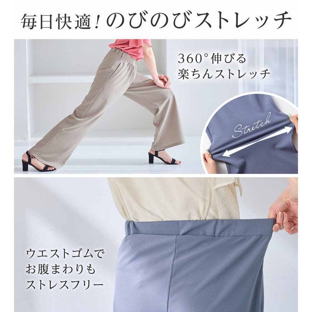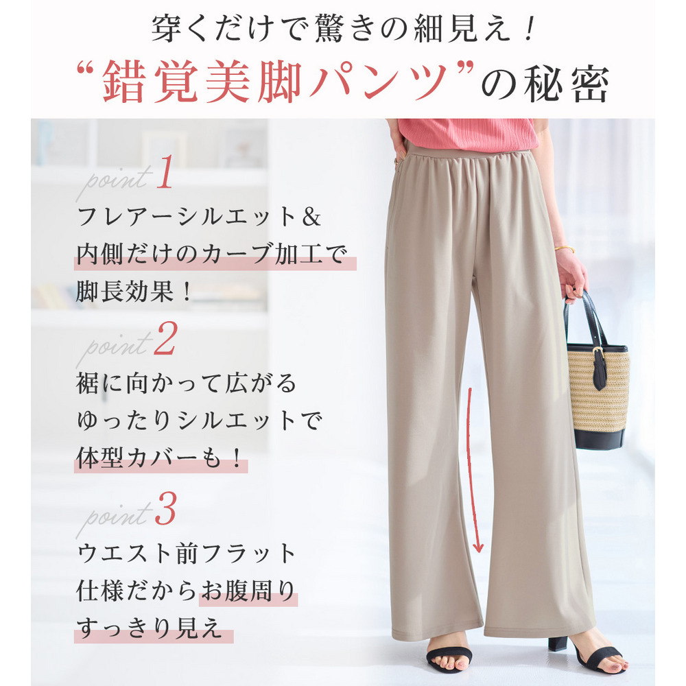 <6つの機能付>錯覚美脚!ストレッチワイドパンツ