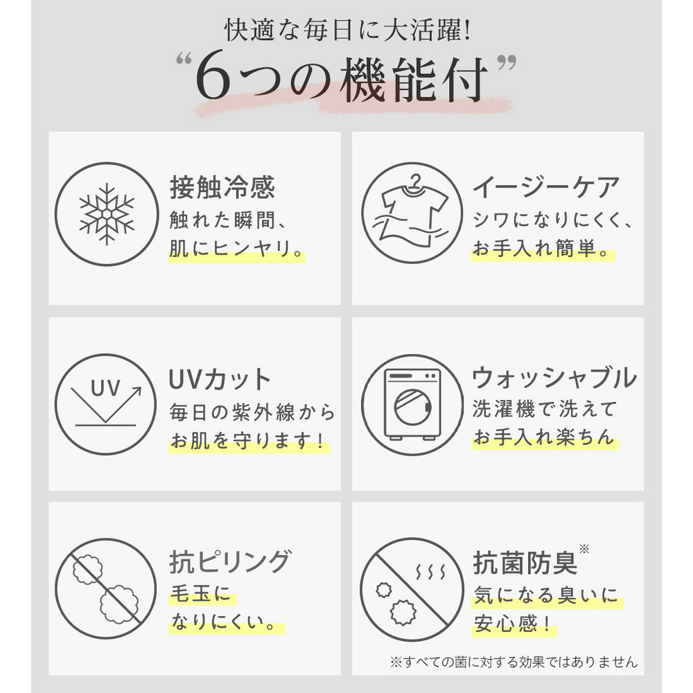 「接触冷感・UVカット・抗菌防臭※1・イージーケア・ウォッシャブル・アンチピリング」