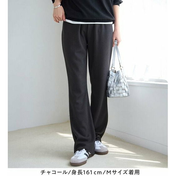 【丈切れる!】すっきり細見えリブフレアパンツ